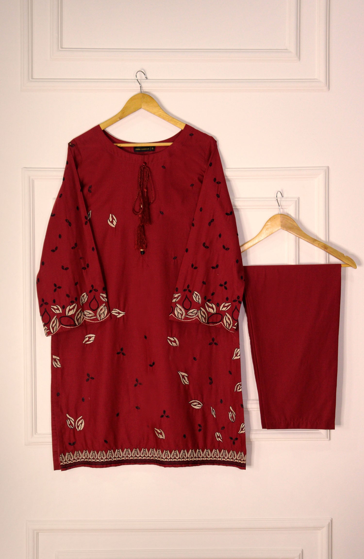 Home Intricate Embroidery by Amna Khadija Embroidered Lawn Stitched 2 Piece Suit - IE-8 - AK25IE - Red - Summer Collection