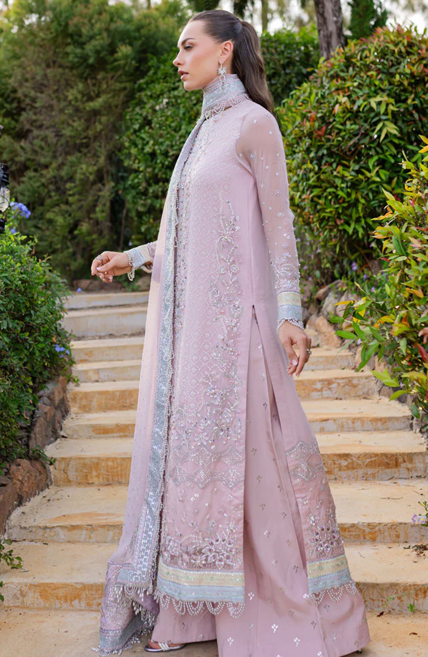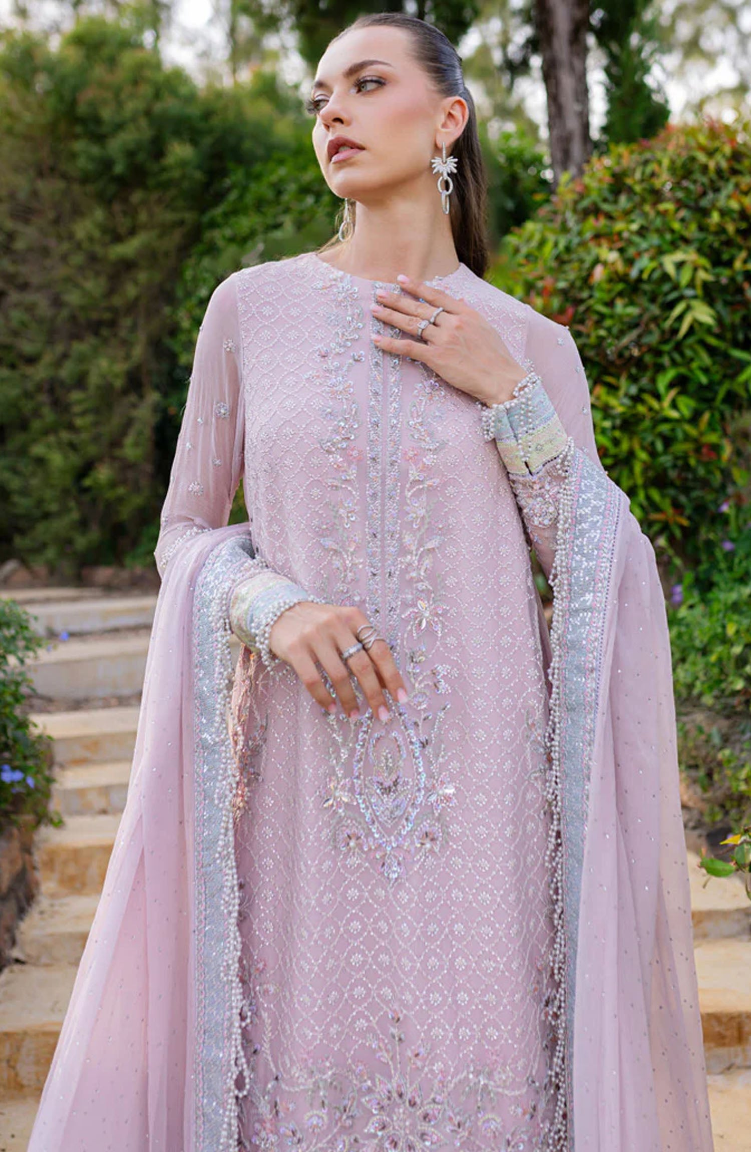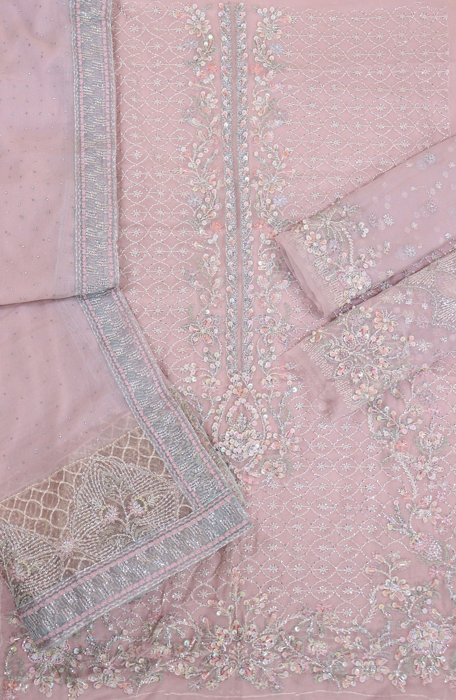 Dyed Crinkle Chiffon Sequins Embroidered Hand Embellished Sleeves