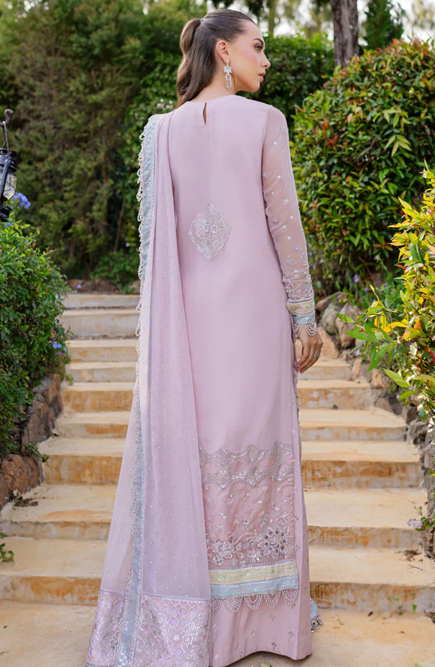 Dyed Organza Sequins Embroidered Back Bunch