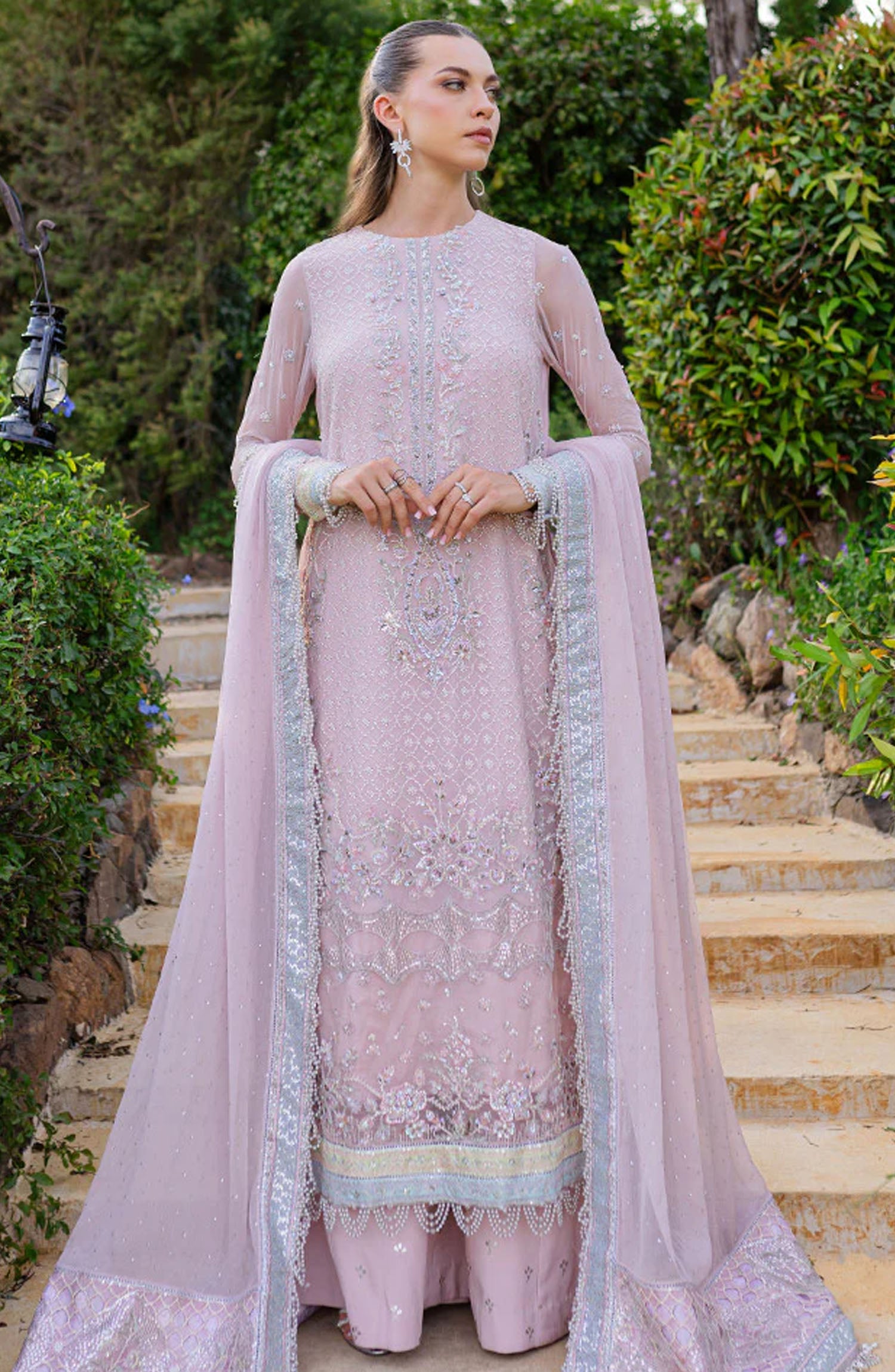 The standard style comes as a long-sleeved kameez with dupatta and trouser/shawlar.