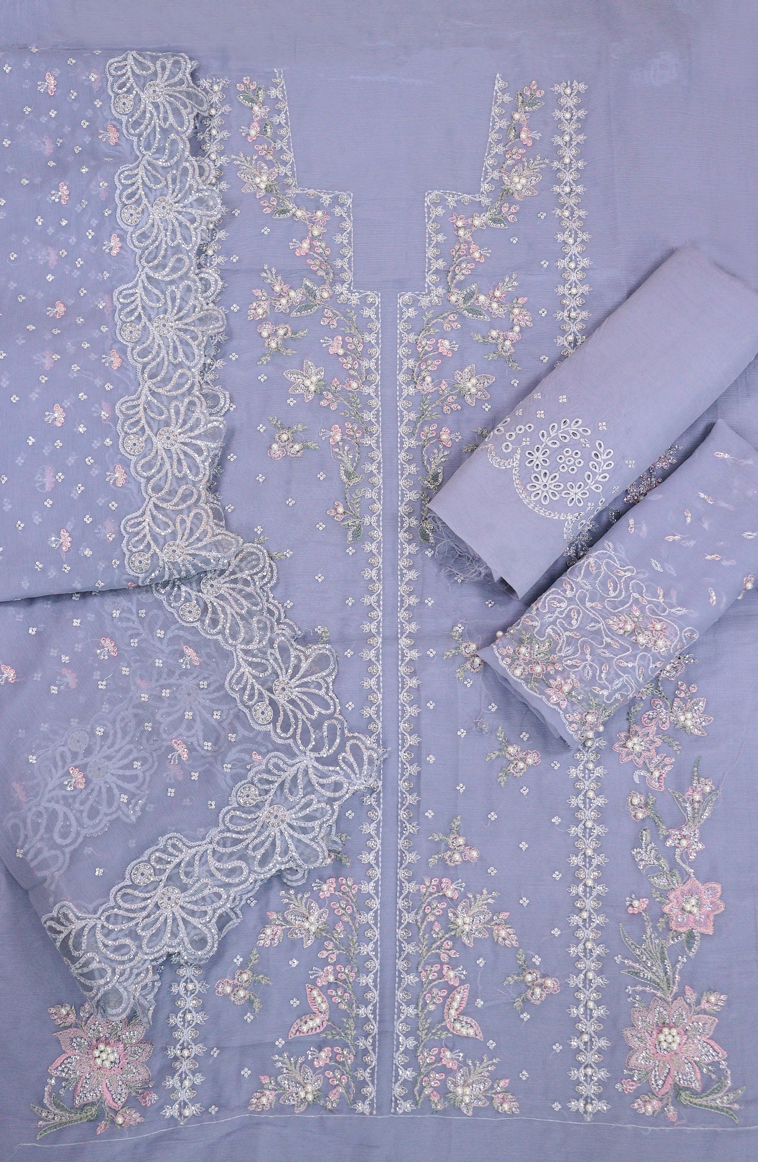 Dyed Contrass Silk Sequins Embroidered Front , Back & Sleeves Border