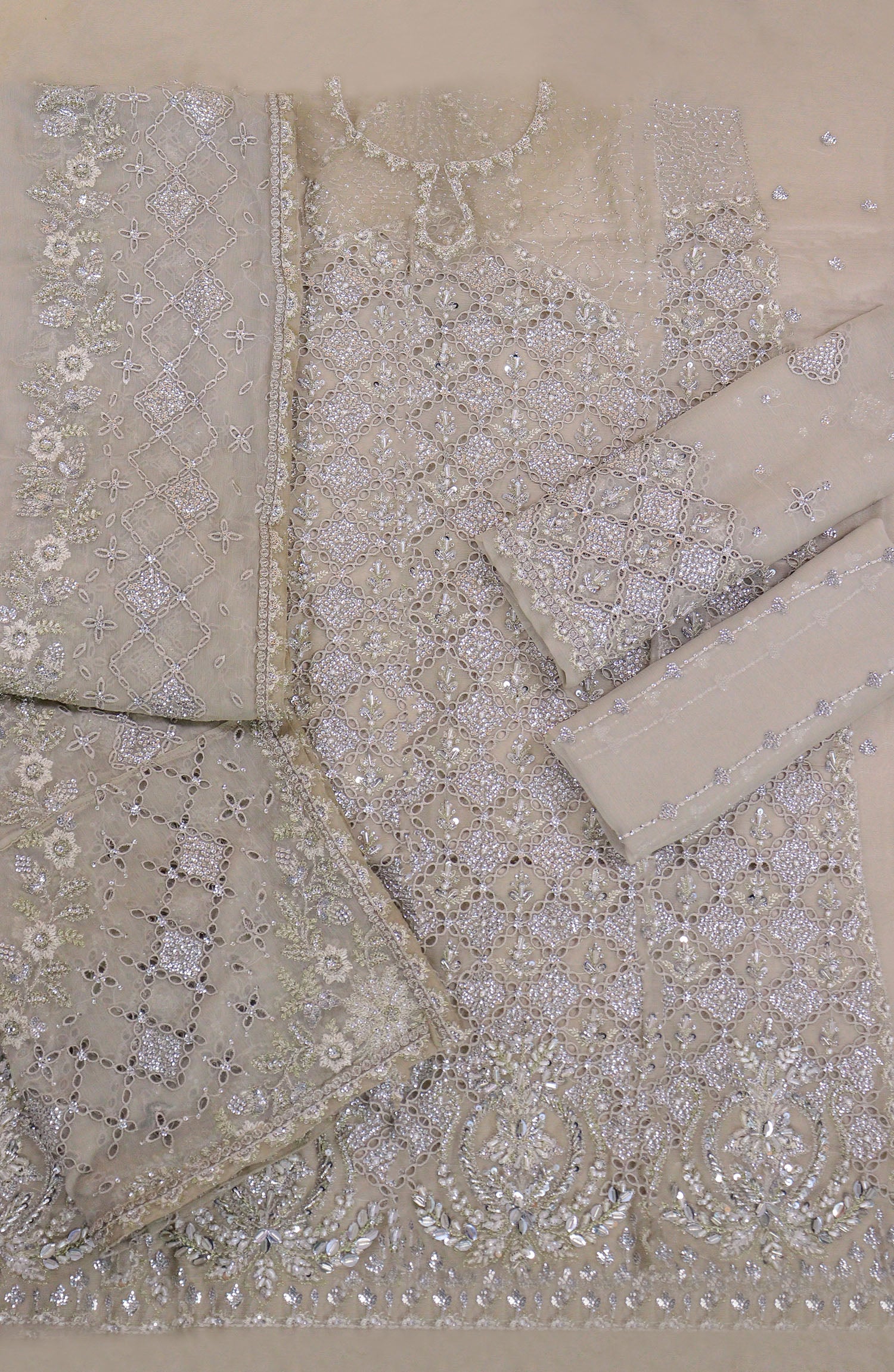 Dyed Crinkle Chiffon Sequins Embroidered Hand