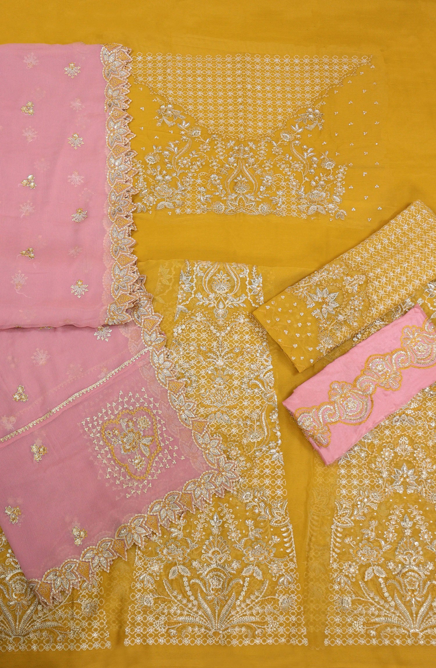 Dyed Crinkle Chiffon Sequins Embroidered Kalli For Front Back Frock