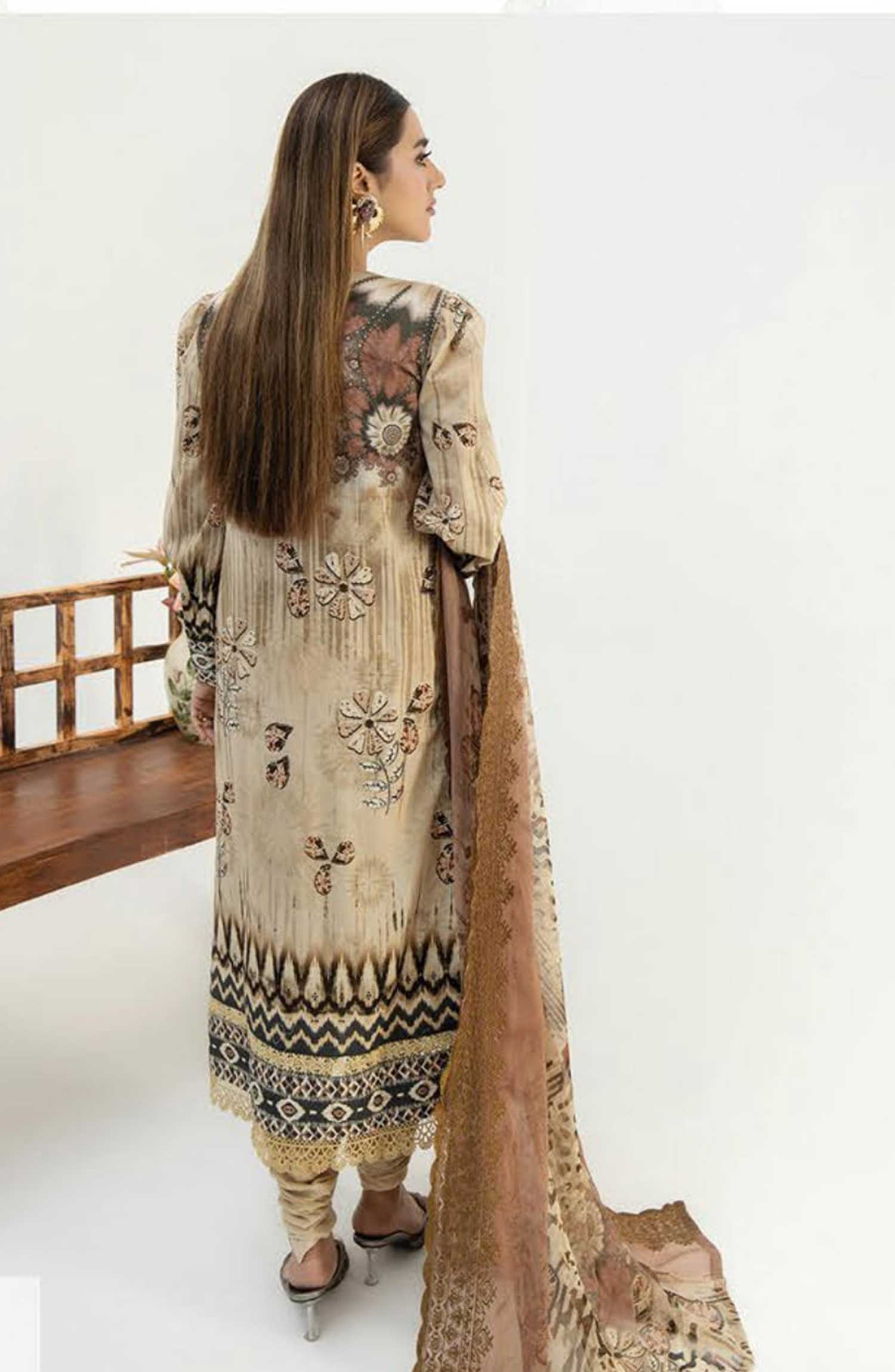 Maryams Luxury Embroidered Net Unstitched 3 Piece Suit - Eiraam-ARZ-8003 - MAR25LF - Fawn - Festive Collection