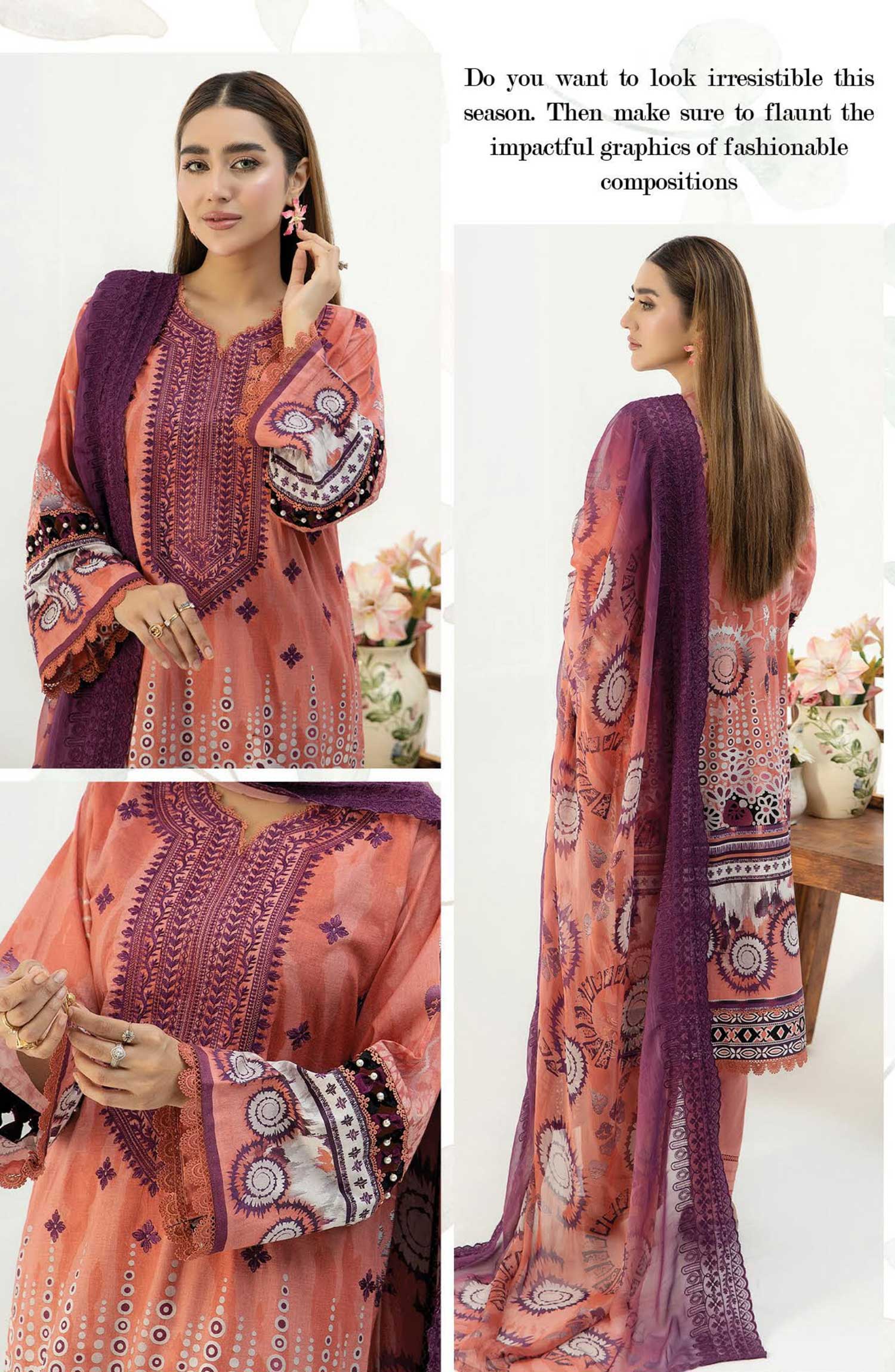 Johra Iyana Embroidered and Printed Lawn Collection has been styled in the image for photography and illustrative purposes.