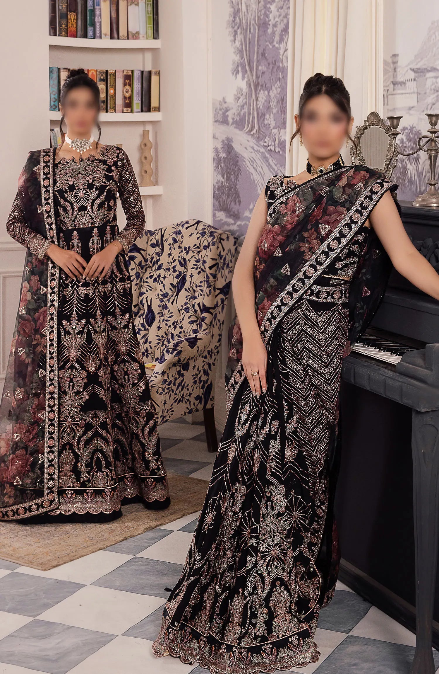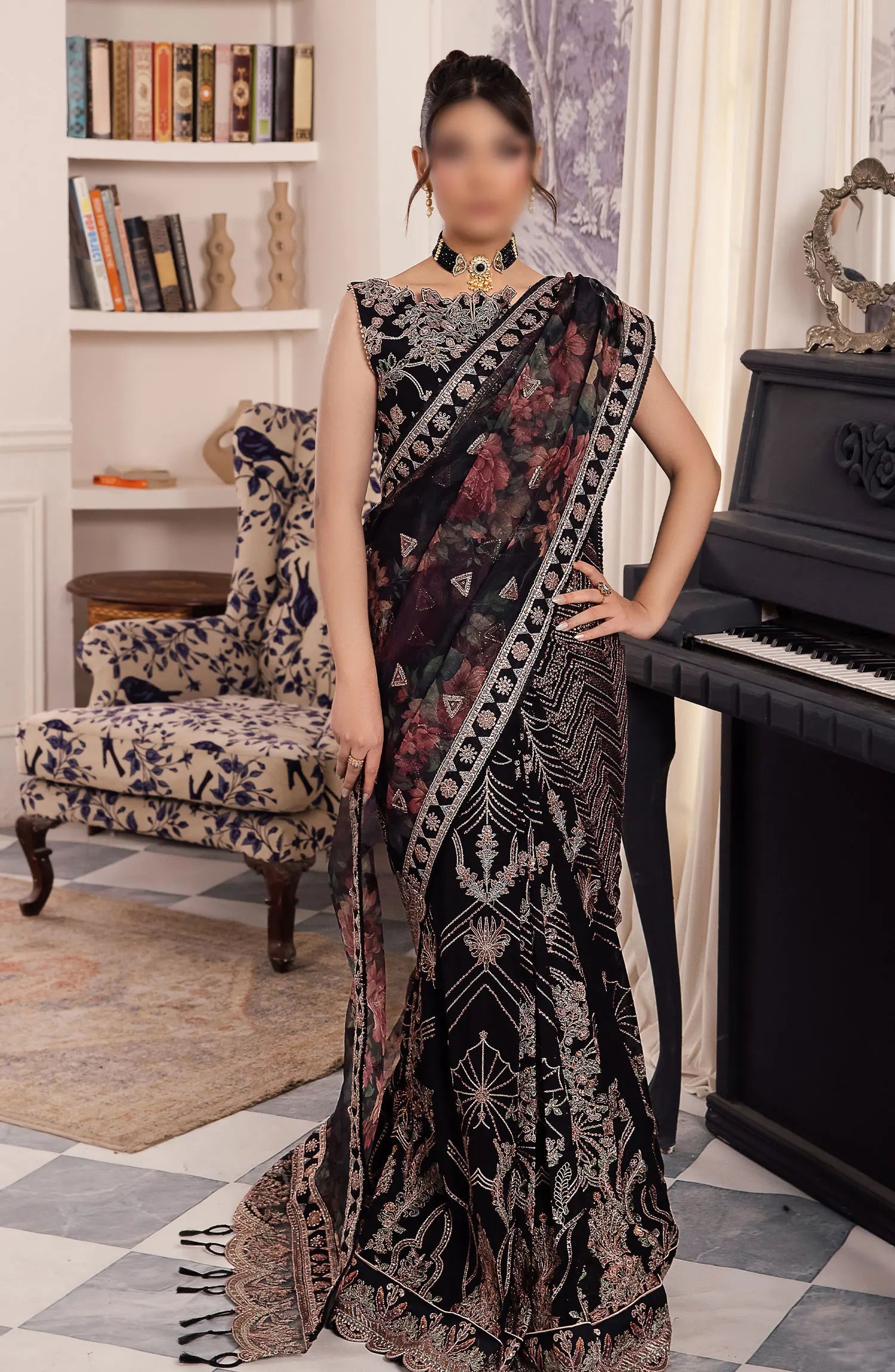 Step into elegance with our Embroidered Georgette Chiffon creation, the front, back, and sleeves are adorned with