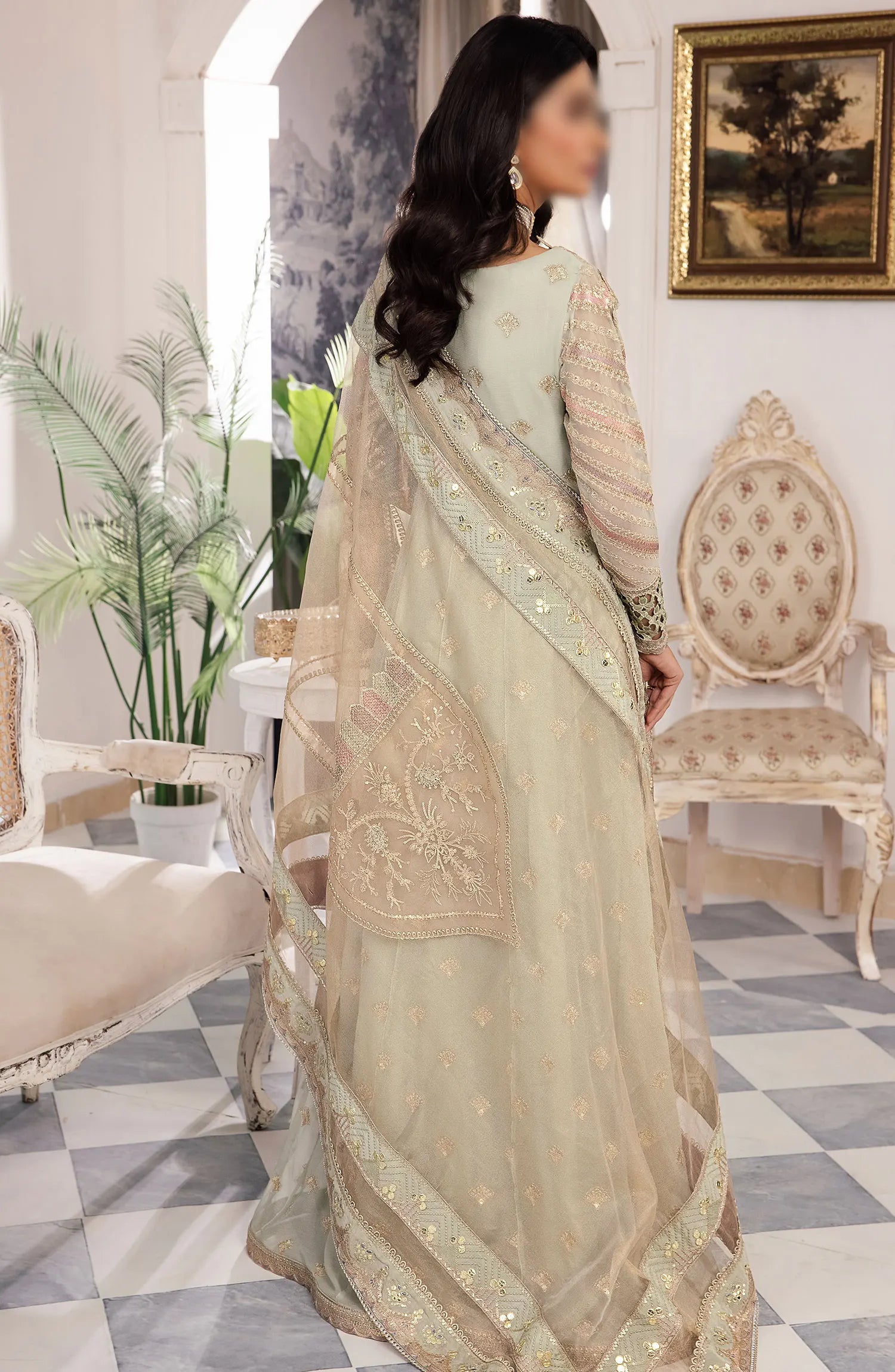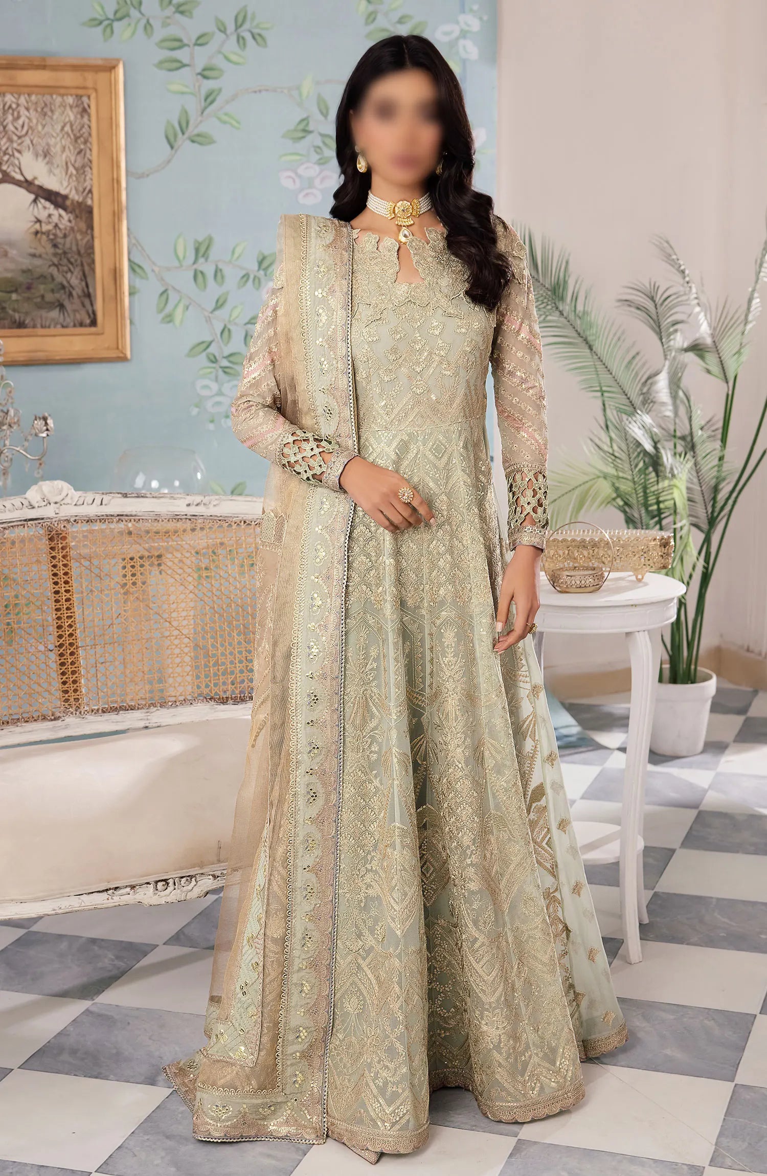 Drape yourself in enchantment with our Chiffon frock, the meticulously embroidered front and back panels,