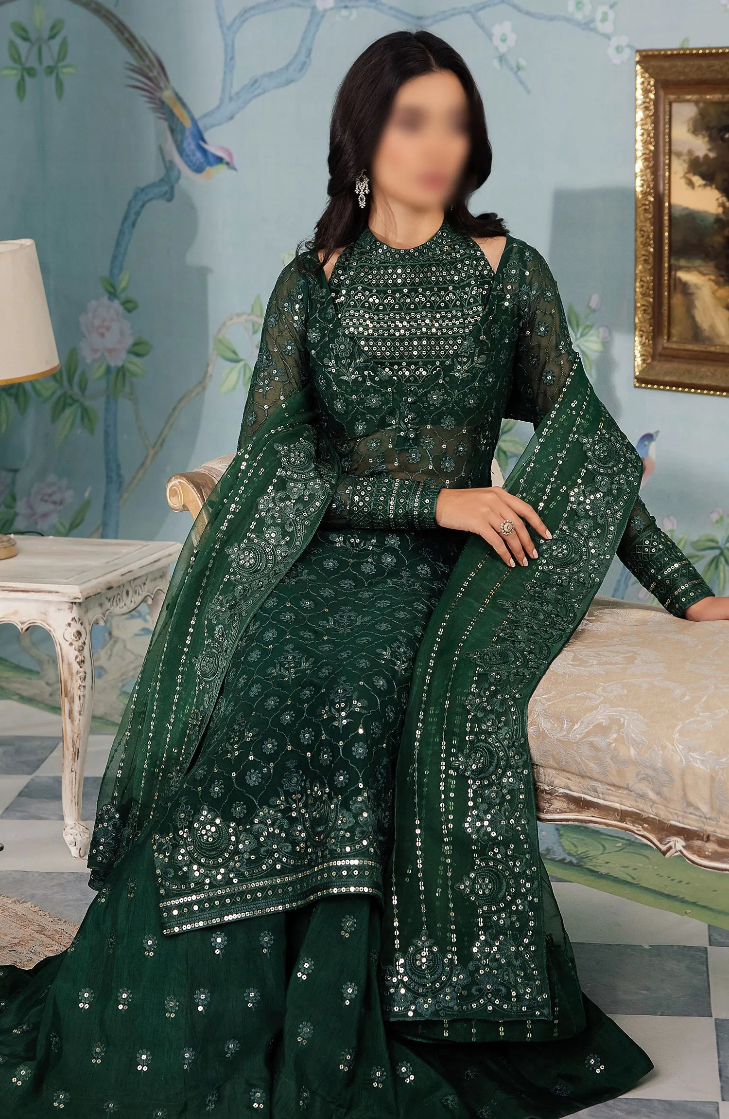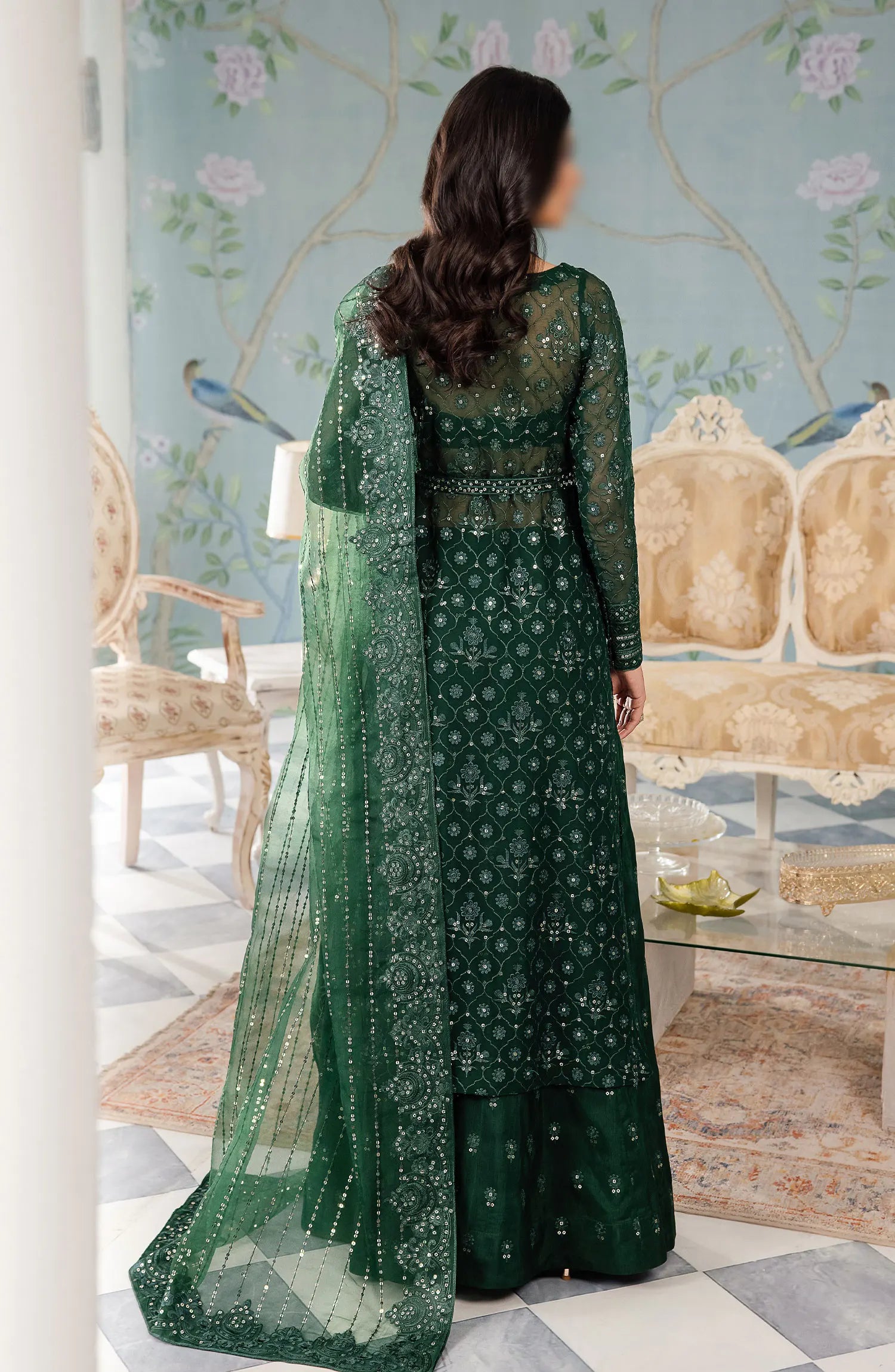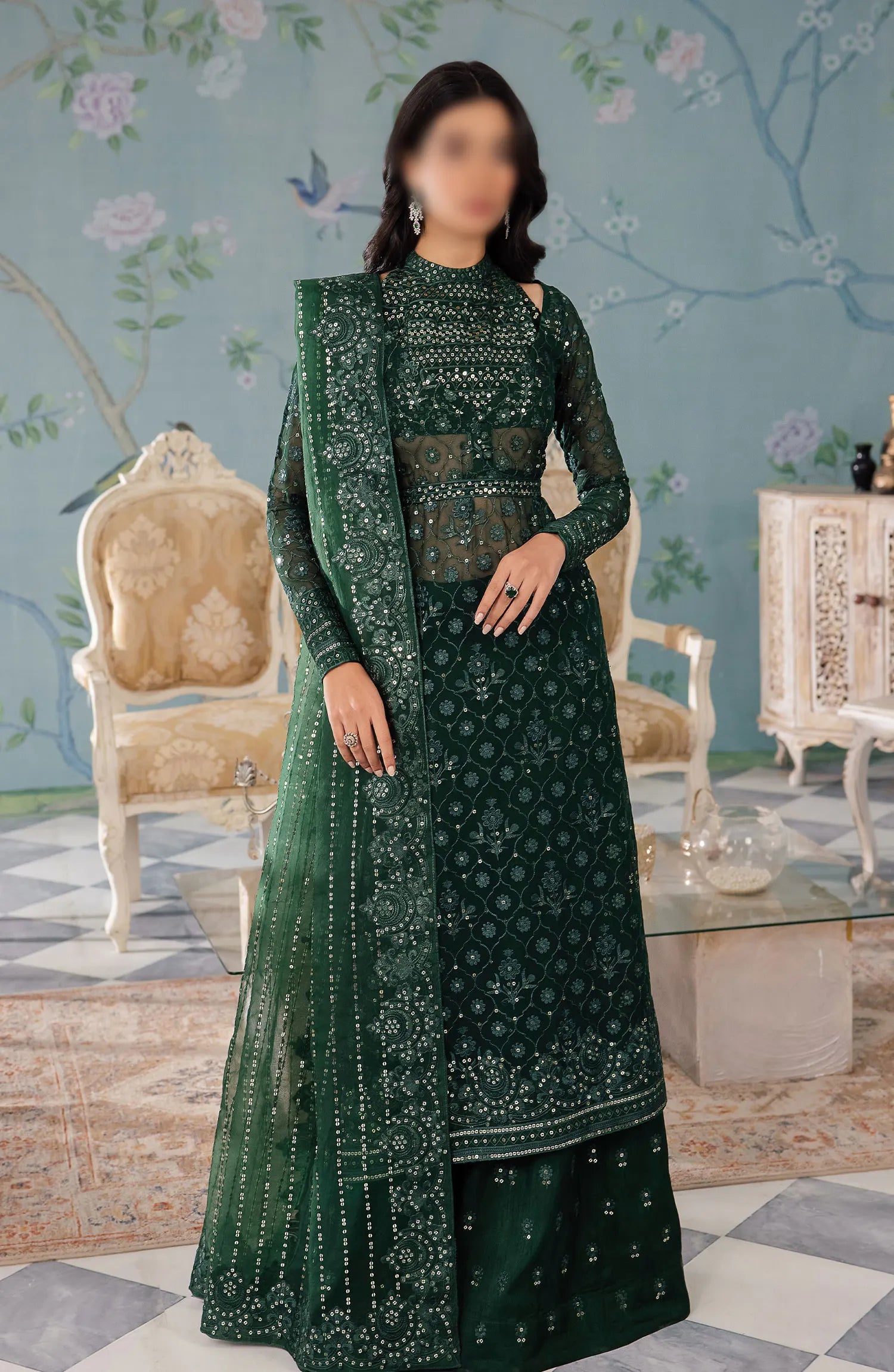 Unveil the allure of our stunning green ensemble, the fully embroidered shirt, boasting intricate detailing on both front and back.