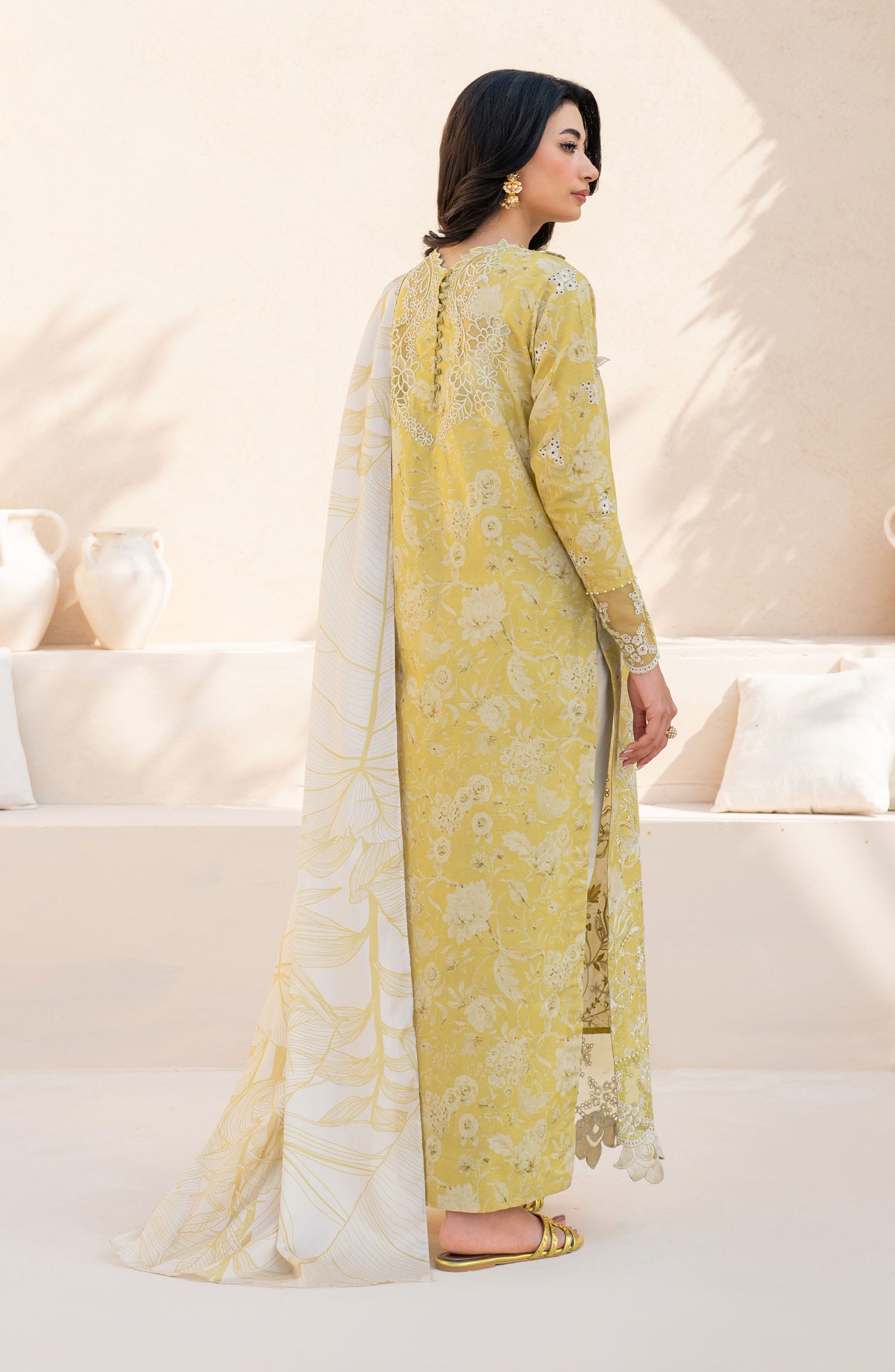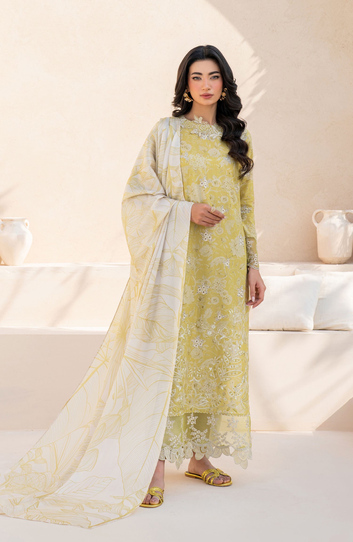 The standard style comes as a long-sleeved kameez with dupatta and trouser/shawlar.
