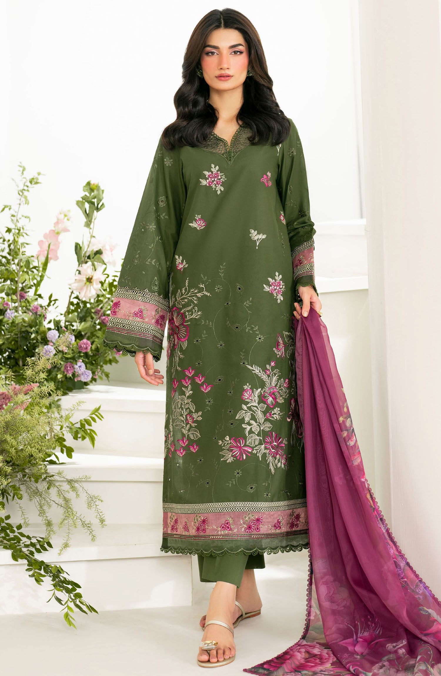 Home Iznik Embroidered Lawn Unstitched 3 Piece Suit - IFE-02 - IZNK25IFE - Green - Luxury Summer Collection