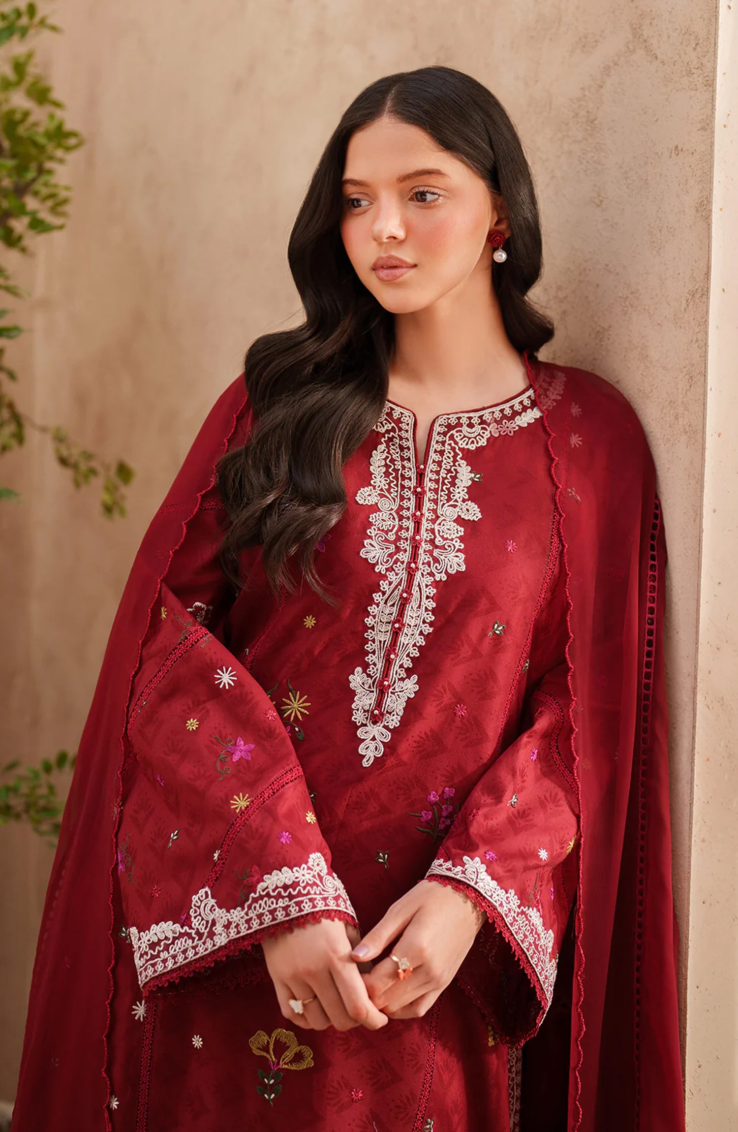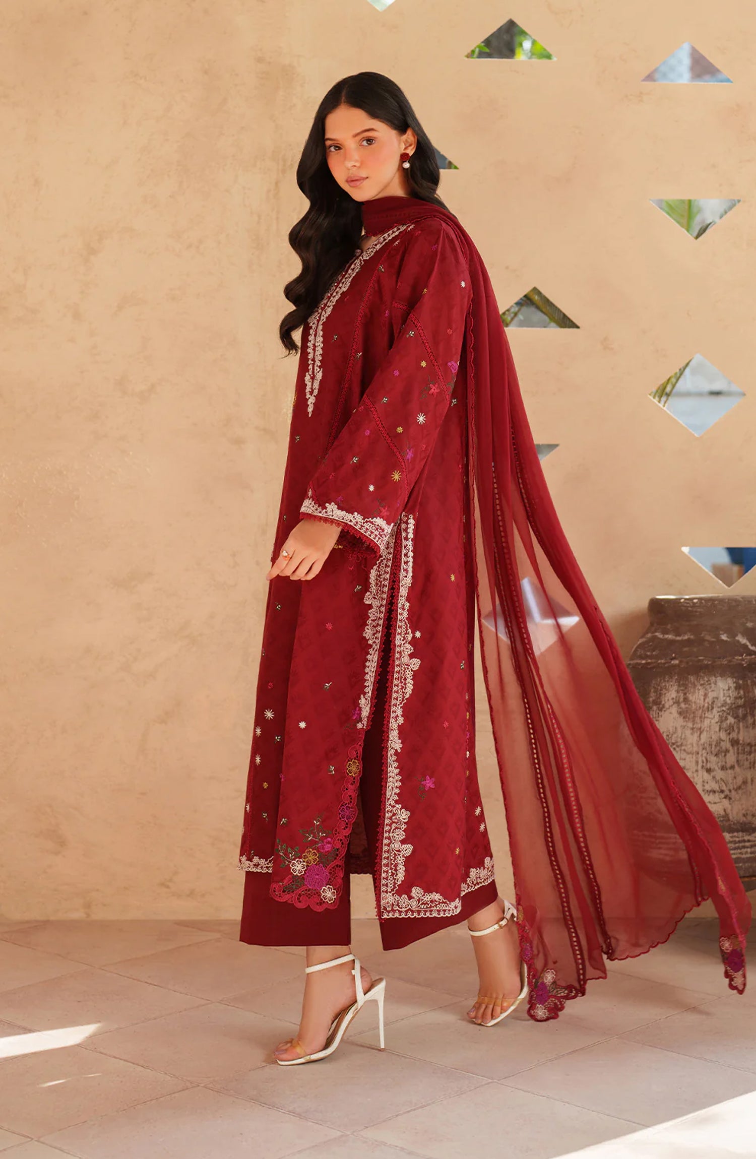 Sleeves: Embroidered Textured Lawn(0.65 M)