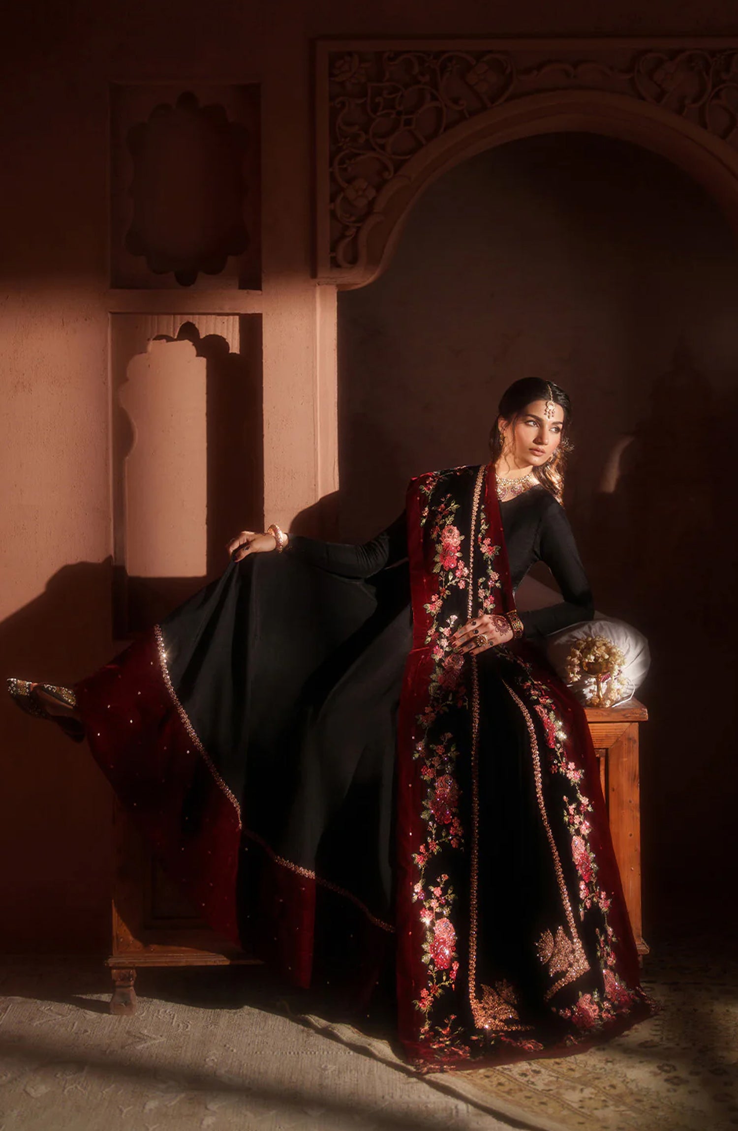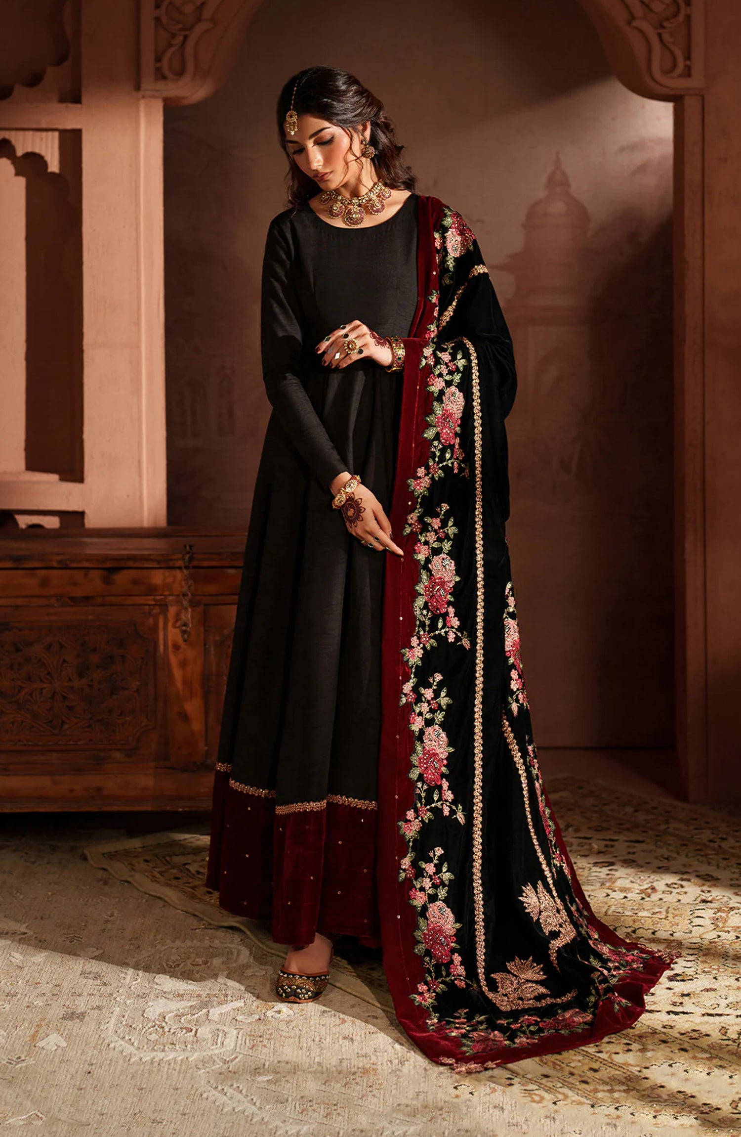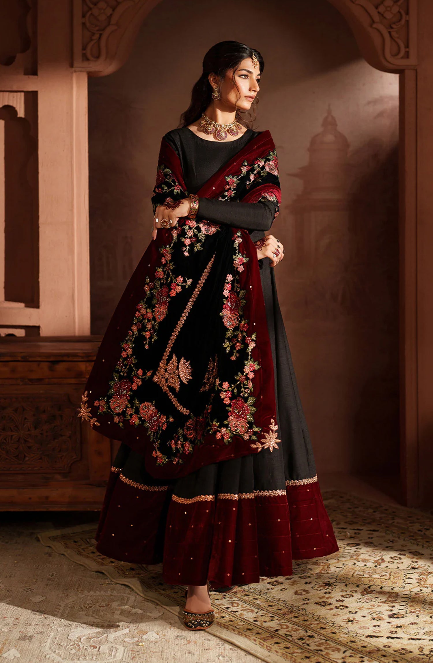 Shawl: Embroidered Velvet Shawl (Stitched)
