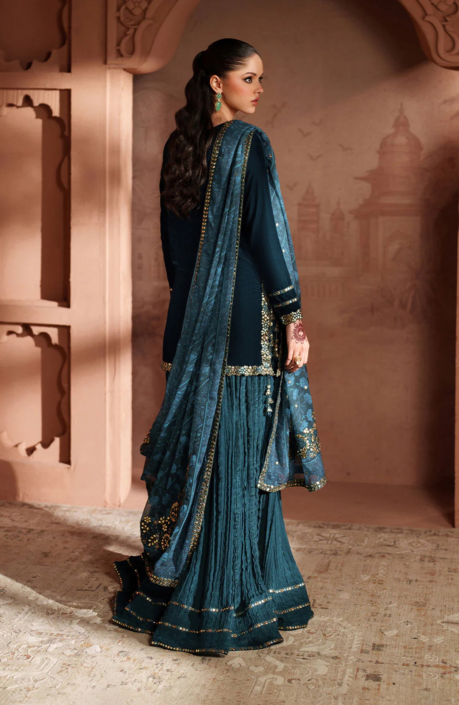 Sleeves & Sharara Lace: Embroidered Organza With Foil Work (18 y)