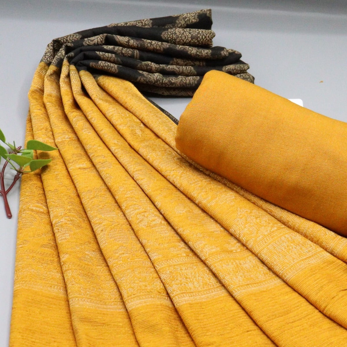 Jacquard Unstitched Leather Peach Collection With Shawl Dupatta has been styled in the image for photography and illustrative purposes.