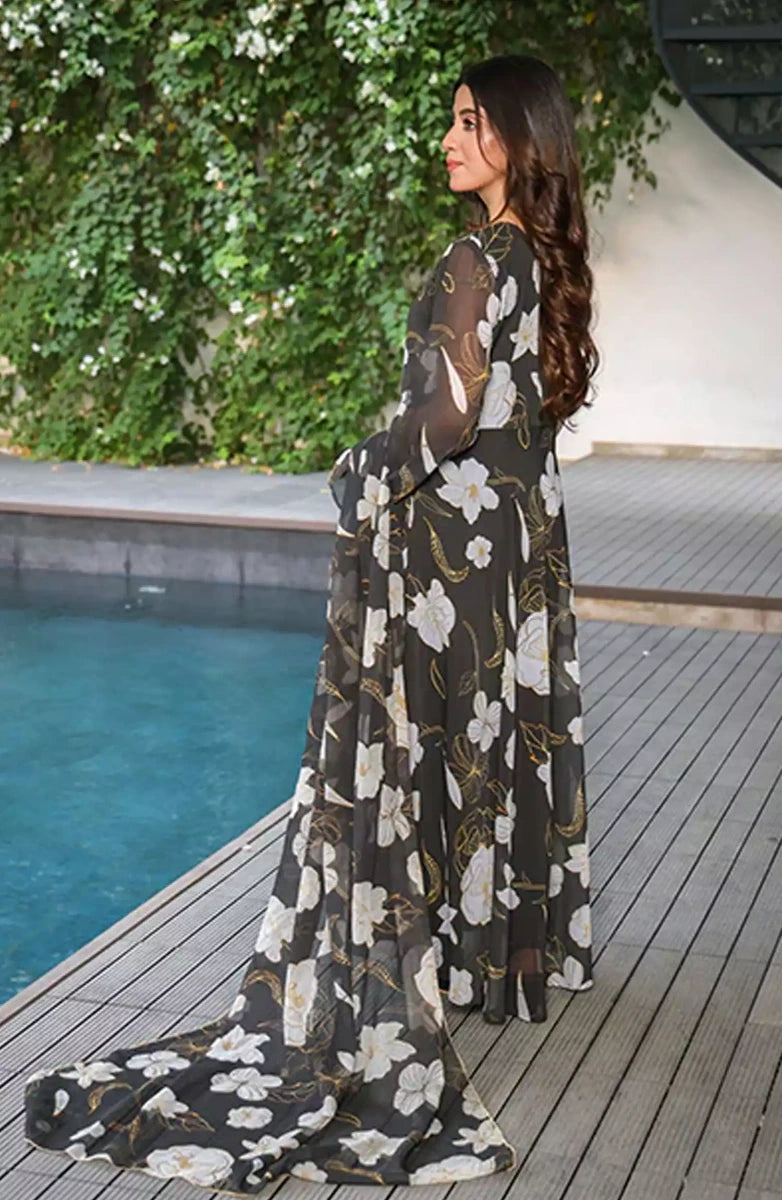 Mahpara by Sadabahar Embroidered Net Stitched 3 Piece Suit - Design-01 - SBD25PRLM - Black - Luxury Festive Collection