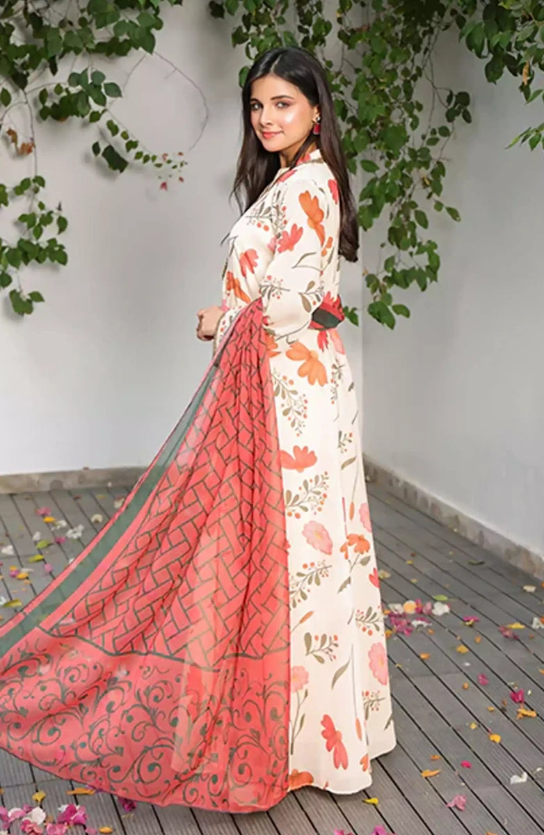 HZ Printkari Embroidered Chikankari Cambric Stitched 3 Piece Suit - LPK-3P-527 - HZ25KRI - Cream Multi - Casual Collection