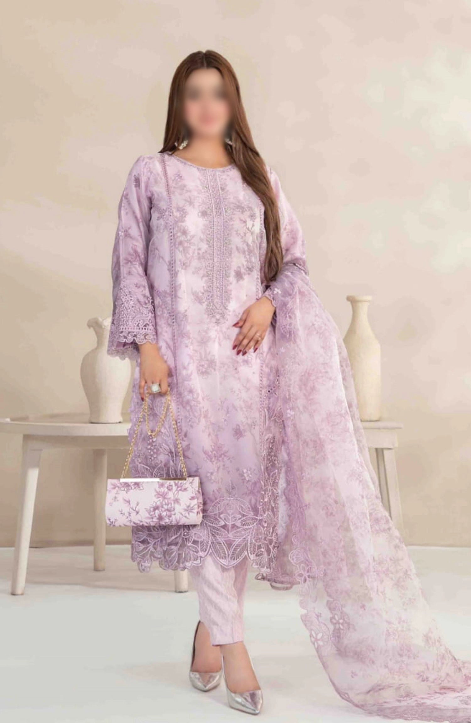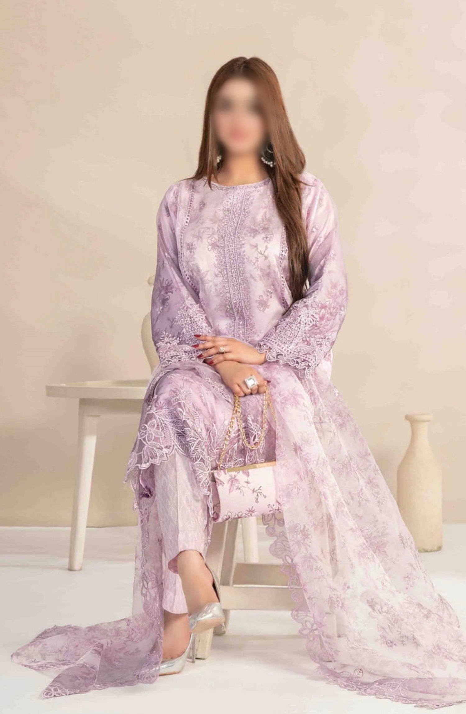 Jahira - Stitched Organza Collection has been styled in the image for photography and illustrative purposes.