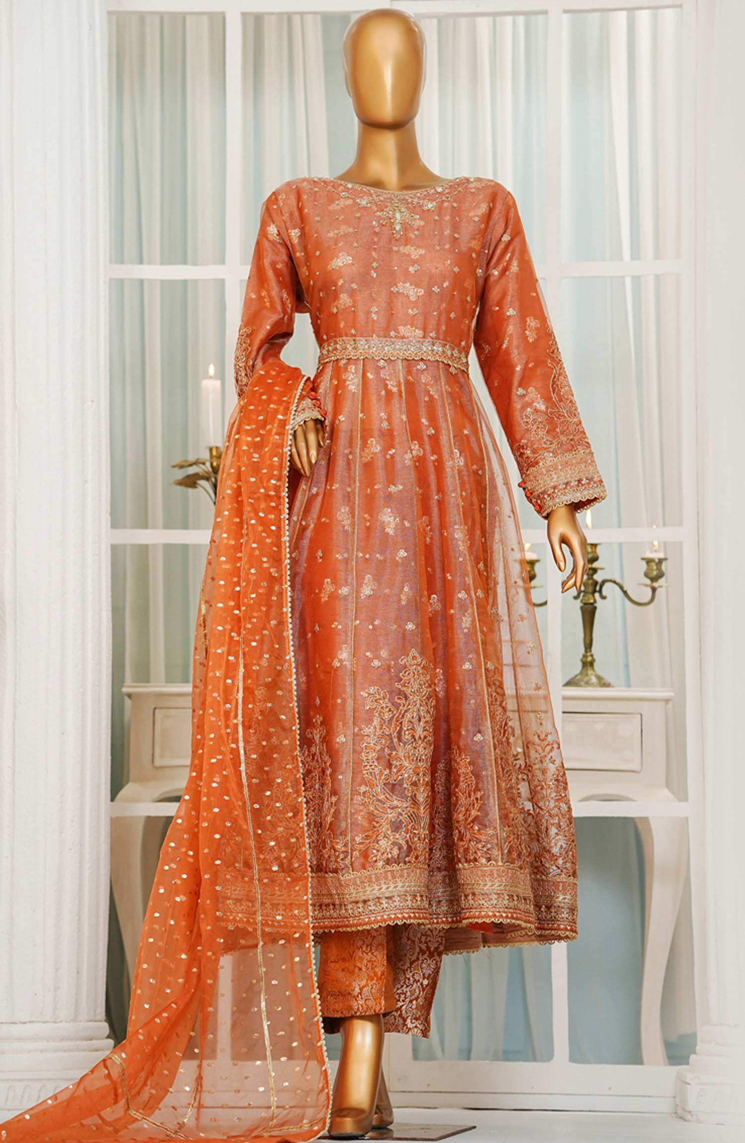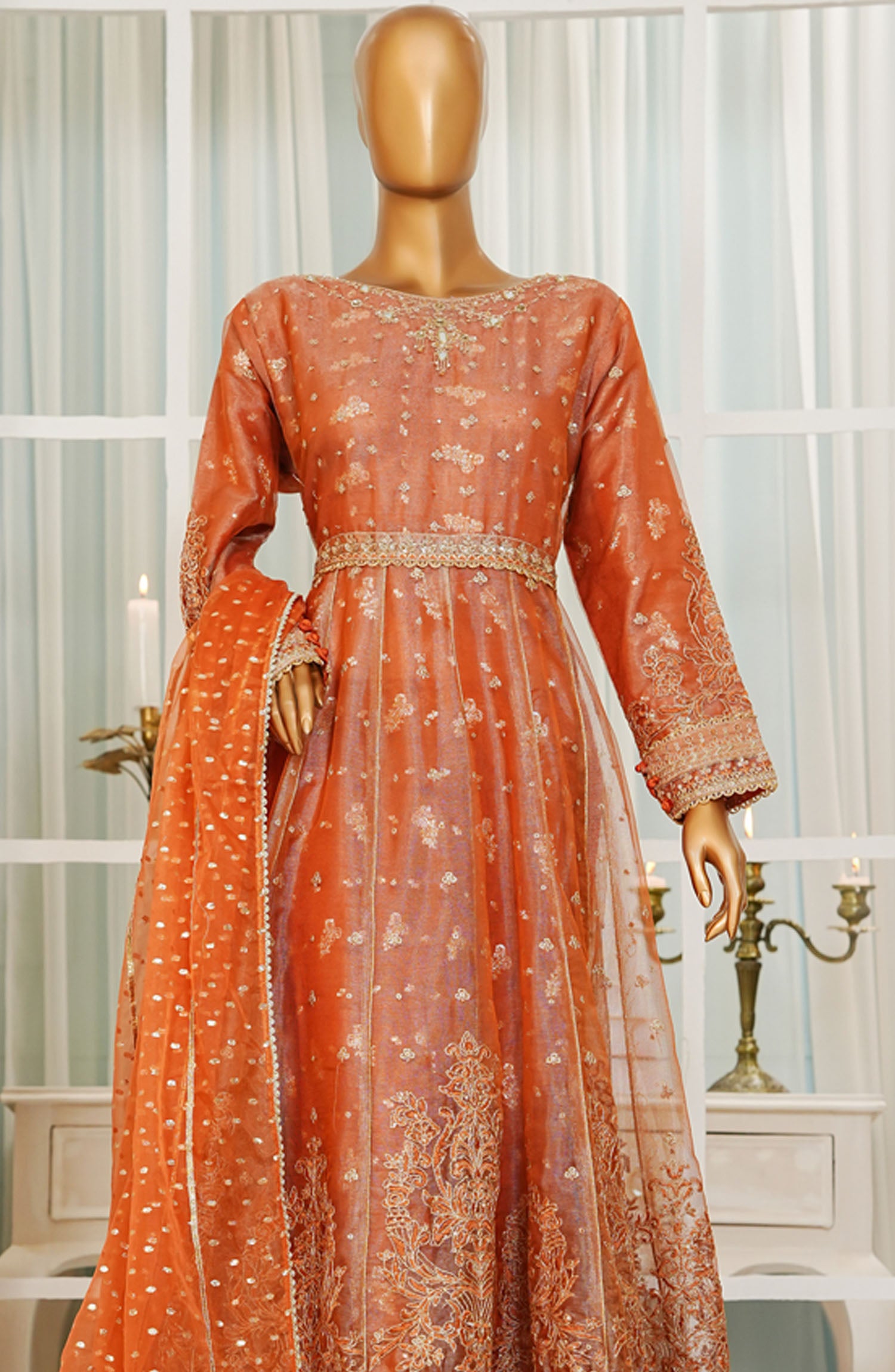 Embroidered Fancy Zarri Net Shirt Frock With Highlights Of Handwork Dyed Silk Badla Boti Paper Silk Inner Stitching Details With Hangings