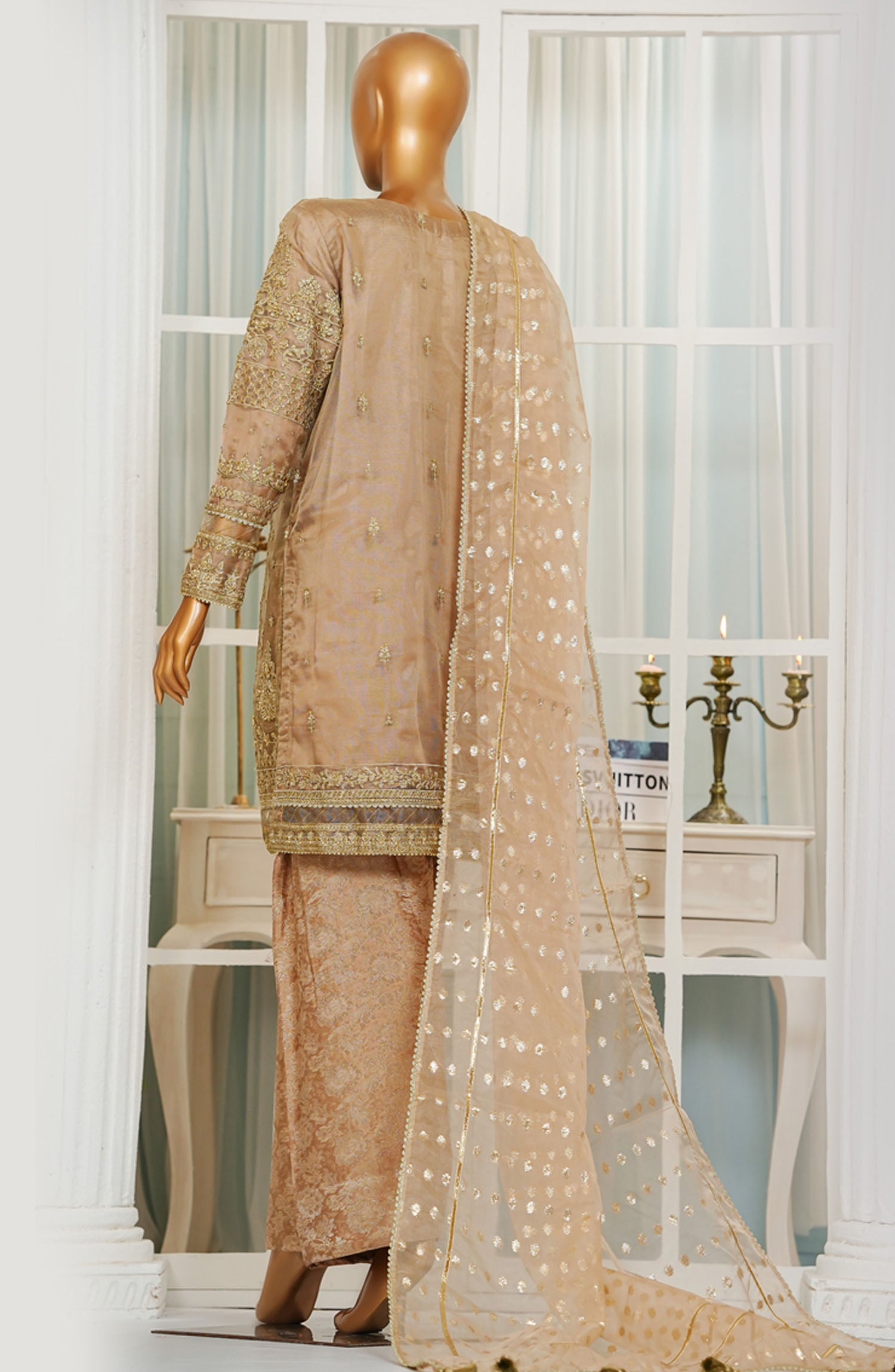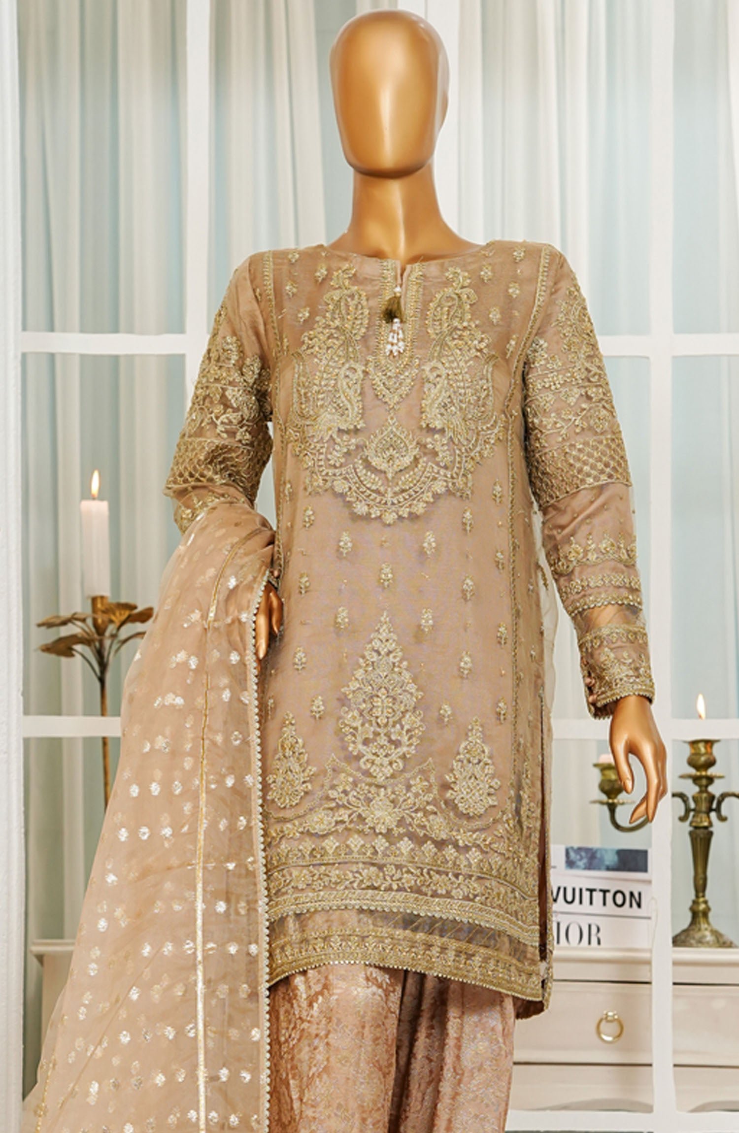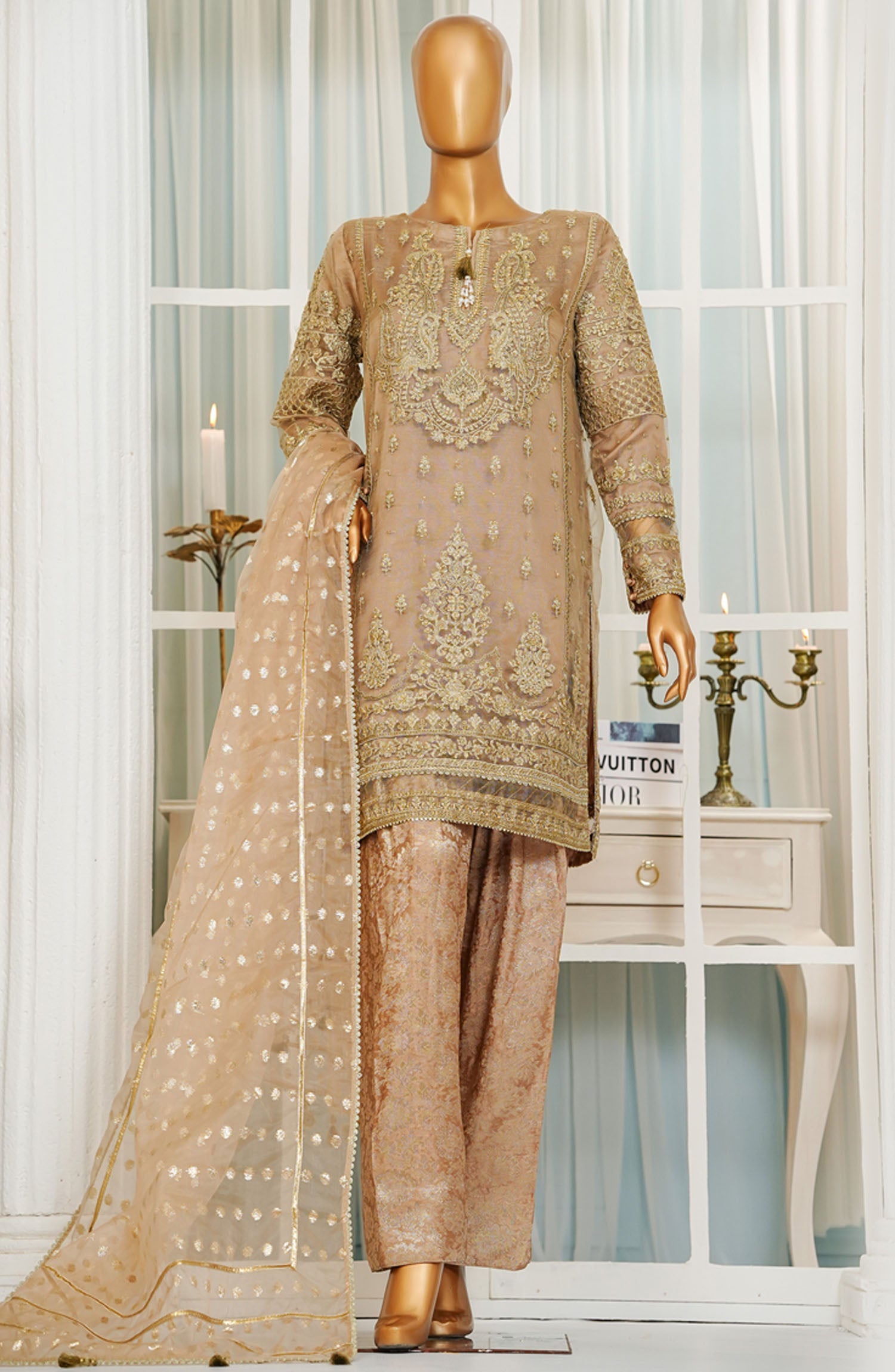 Jashn by HZ Textile Embroidered Zarri Net Stitched 3 Piece Suit - HZK-207 Golden - HZ25JFF - Golden - Wedding Collection