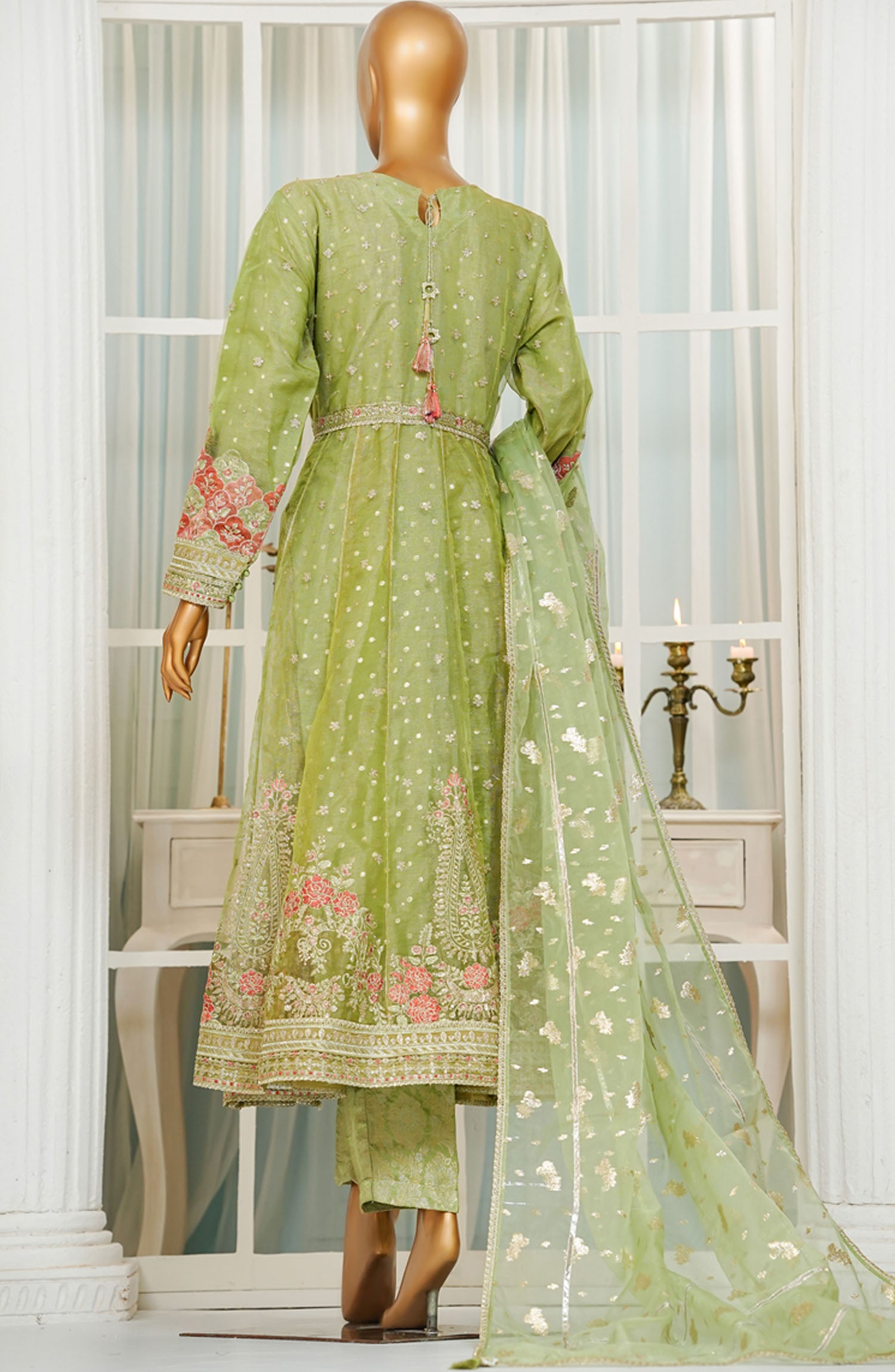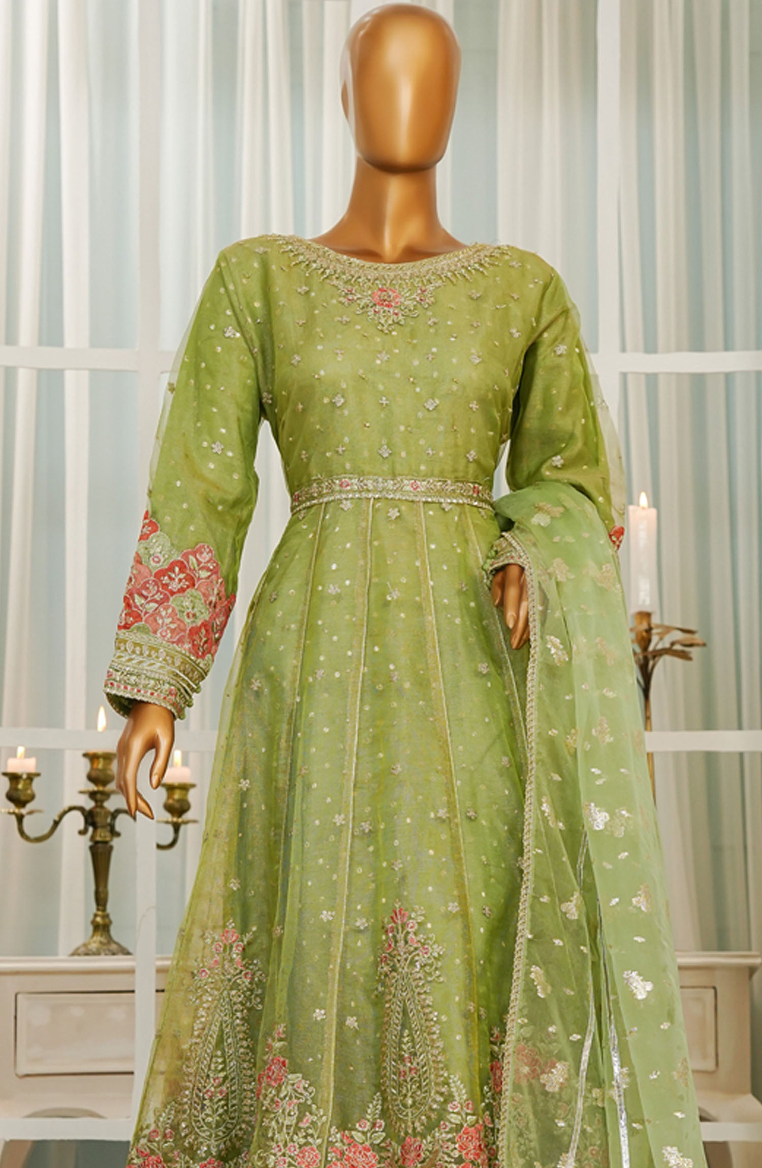 Jashn by HZ Textile Embroidered Zarri Net Stitched 3 Piece Suit - HZK-208 Green - HZ25JFF - Green - Wedding Collection