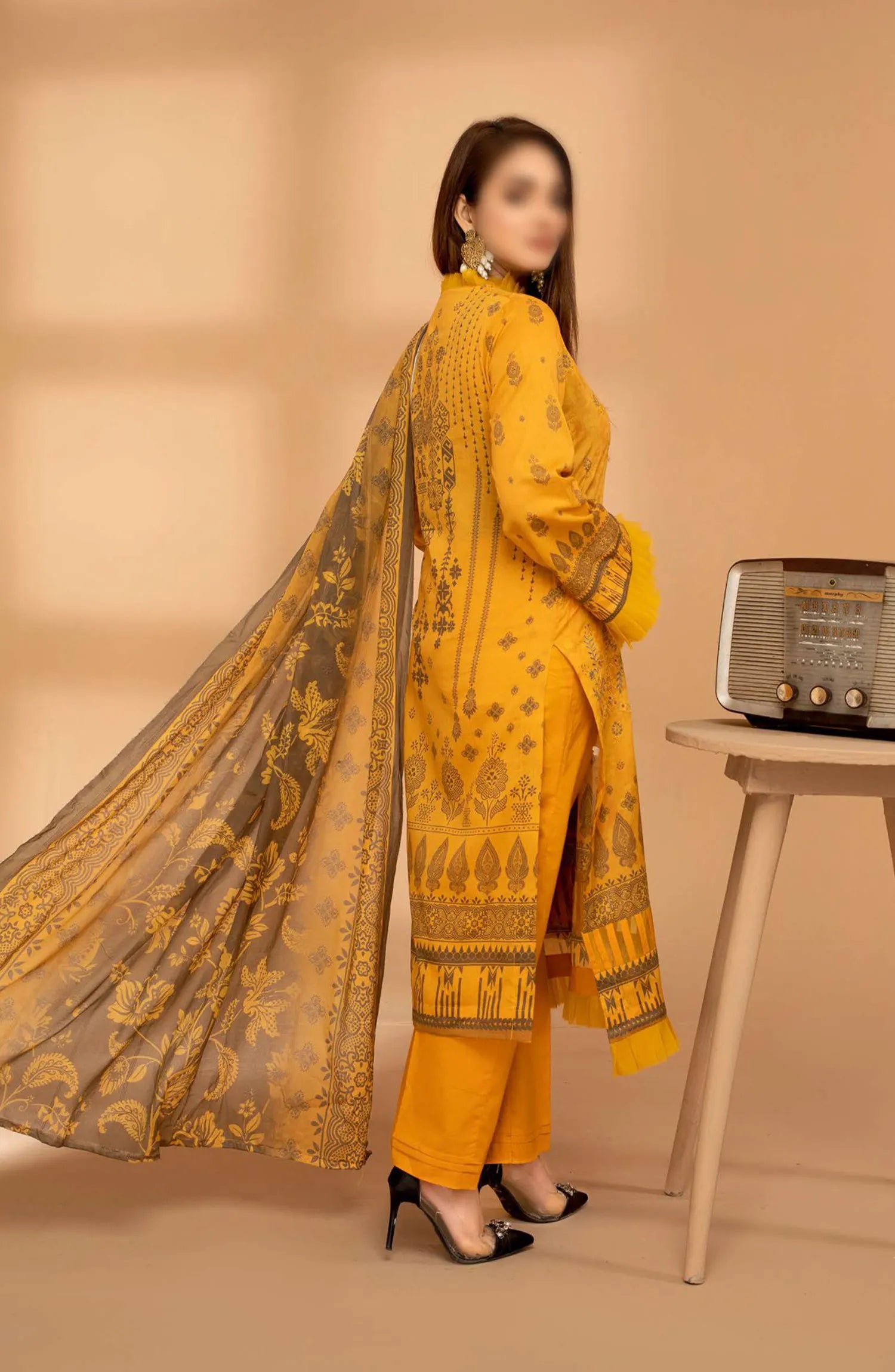 HZ Textile Digital Printed Linen Slub Unstitched 3 Piece Suit - LSD-309 - HZ25LNSL - Mustard - Winter Collection
