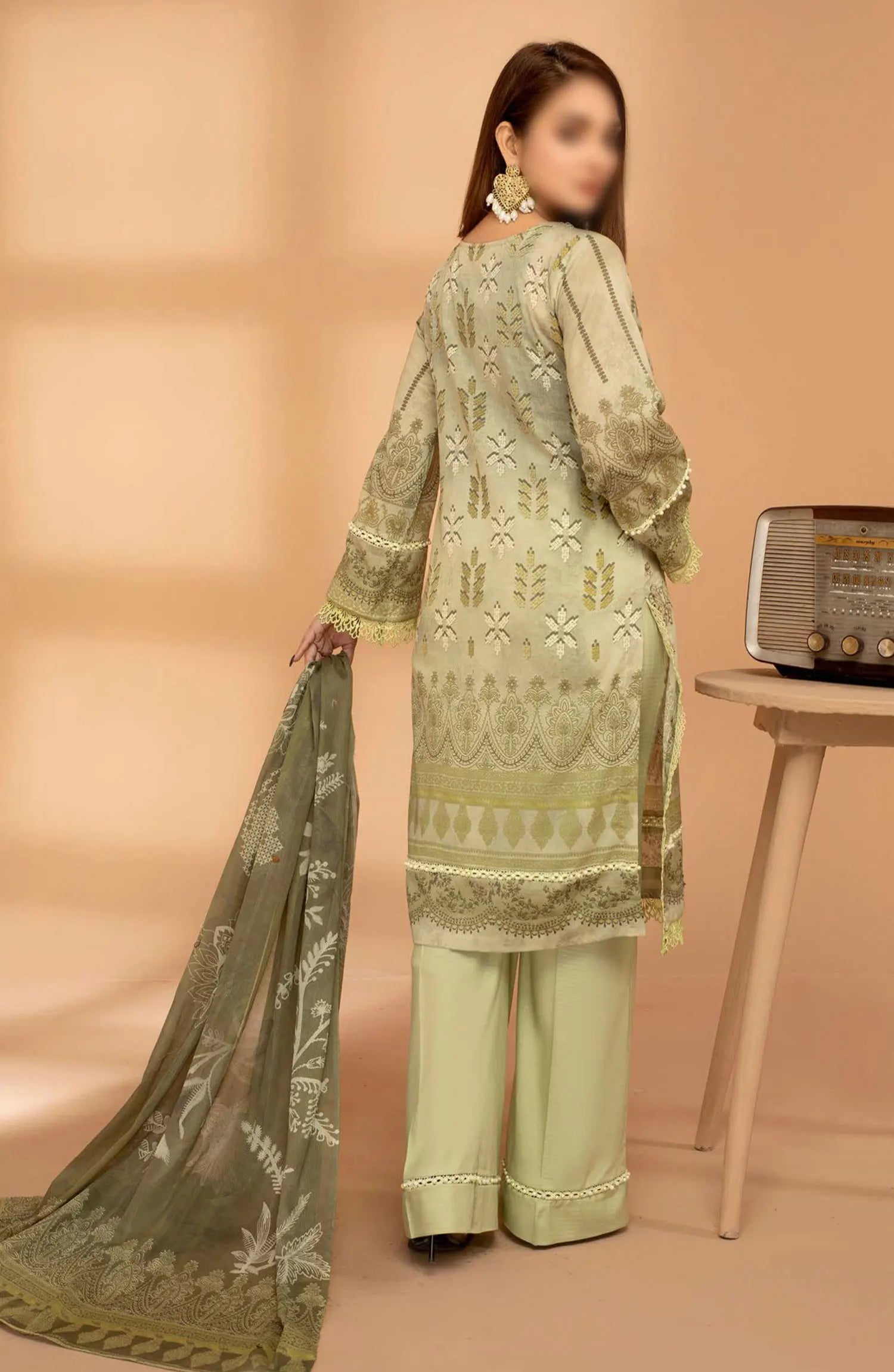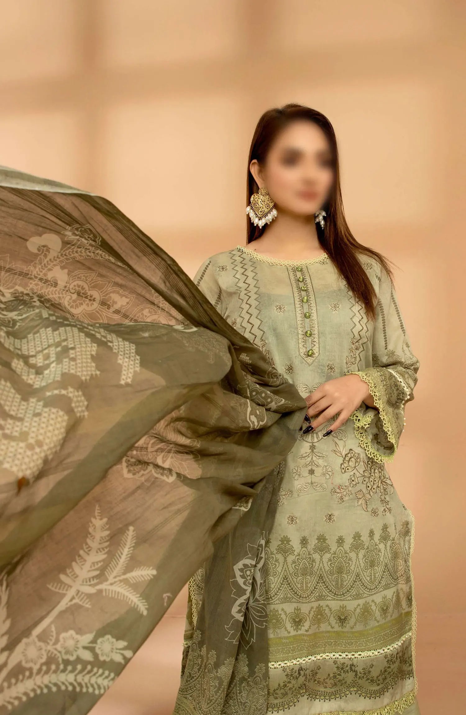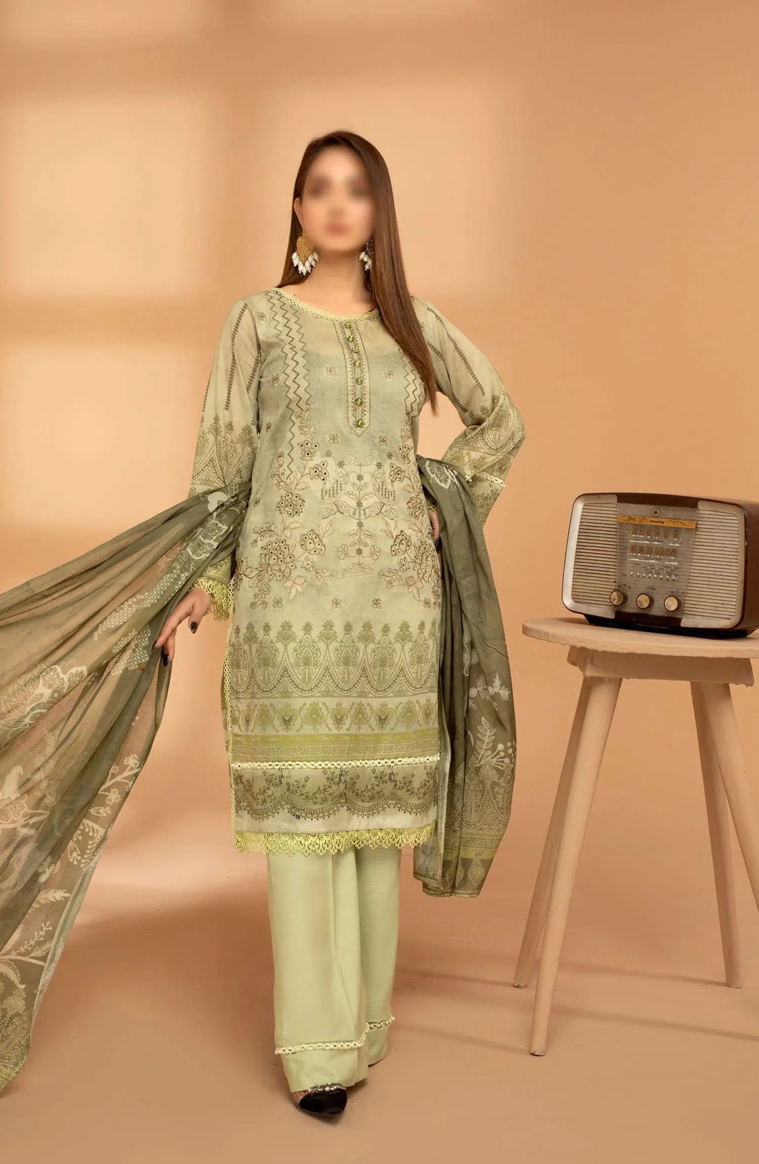 3 Piece Digital Print and Embroidered Lawn suit with Fancy Voile Dupatta .