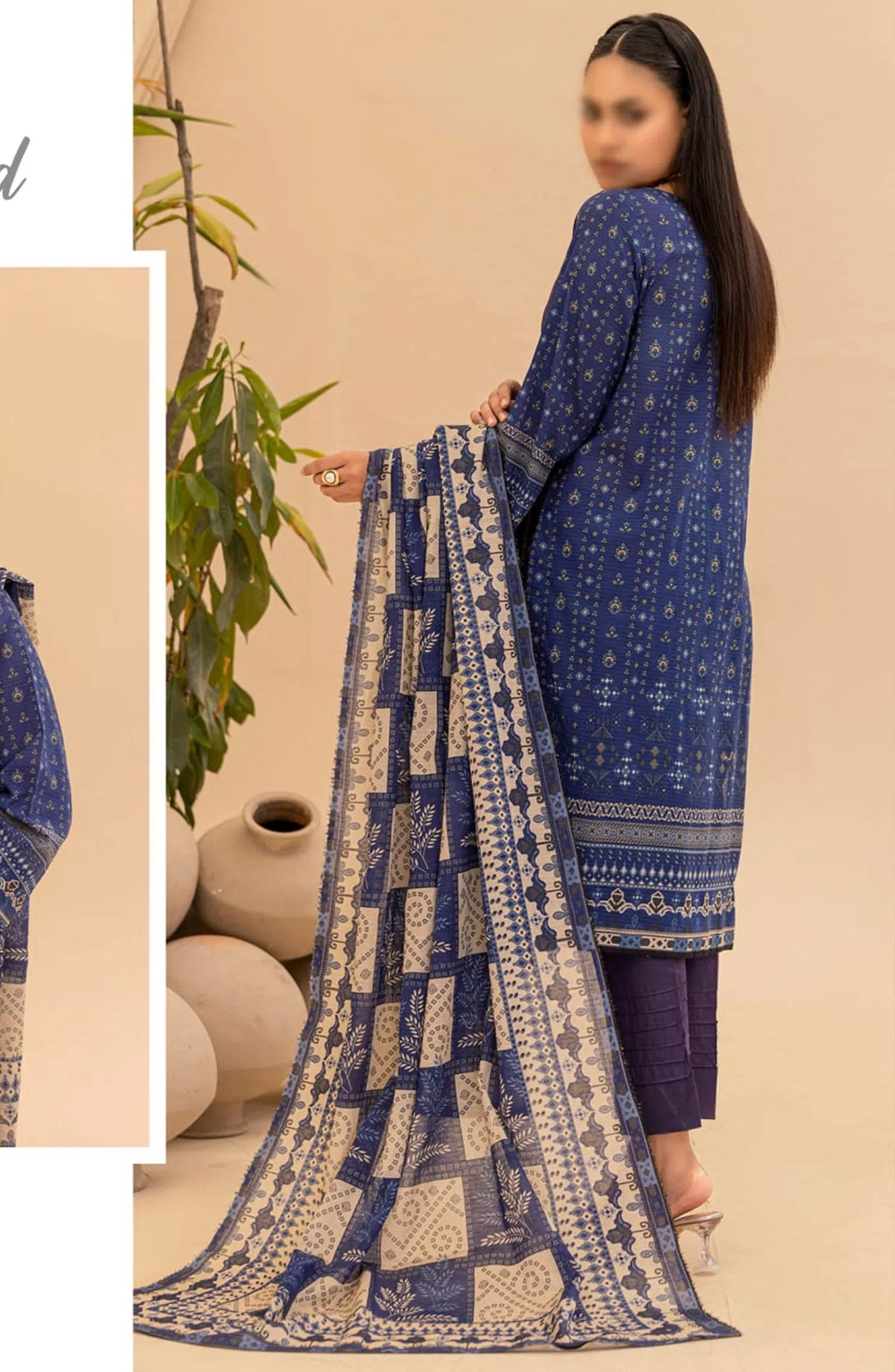 Jasmine Lawn Dora Digital Print and Embroidered Collection Vol 16 has been styled in the image for photography and illustrative purposes.
