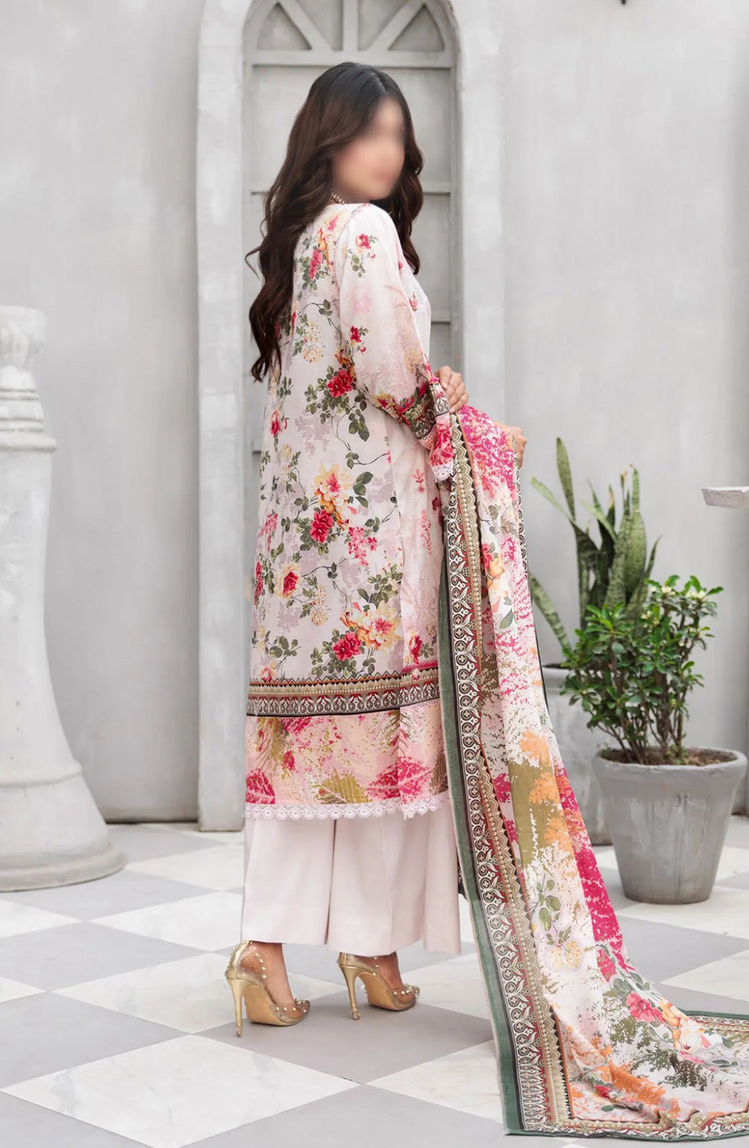 3 Piece Digital Printed and Embroidered Lawn Dora Suit with Digital Fancy Dupatta.