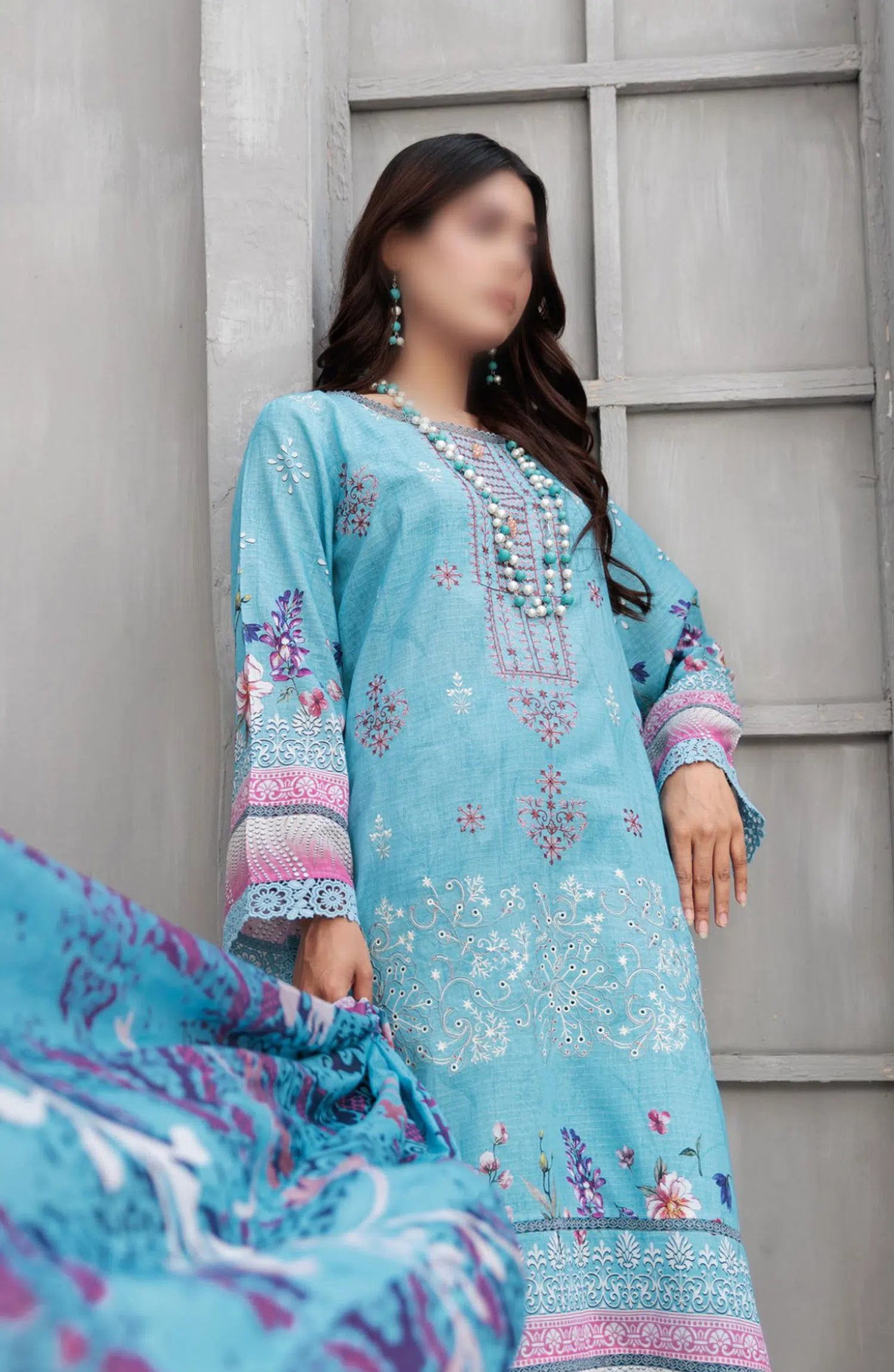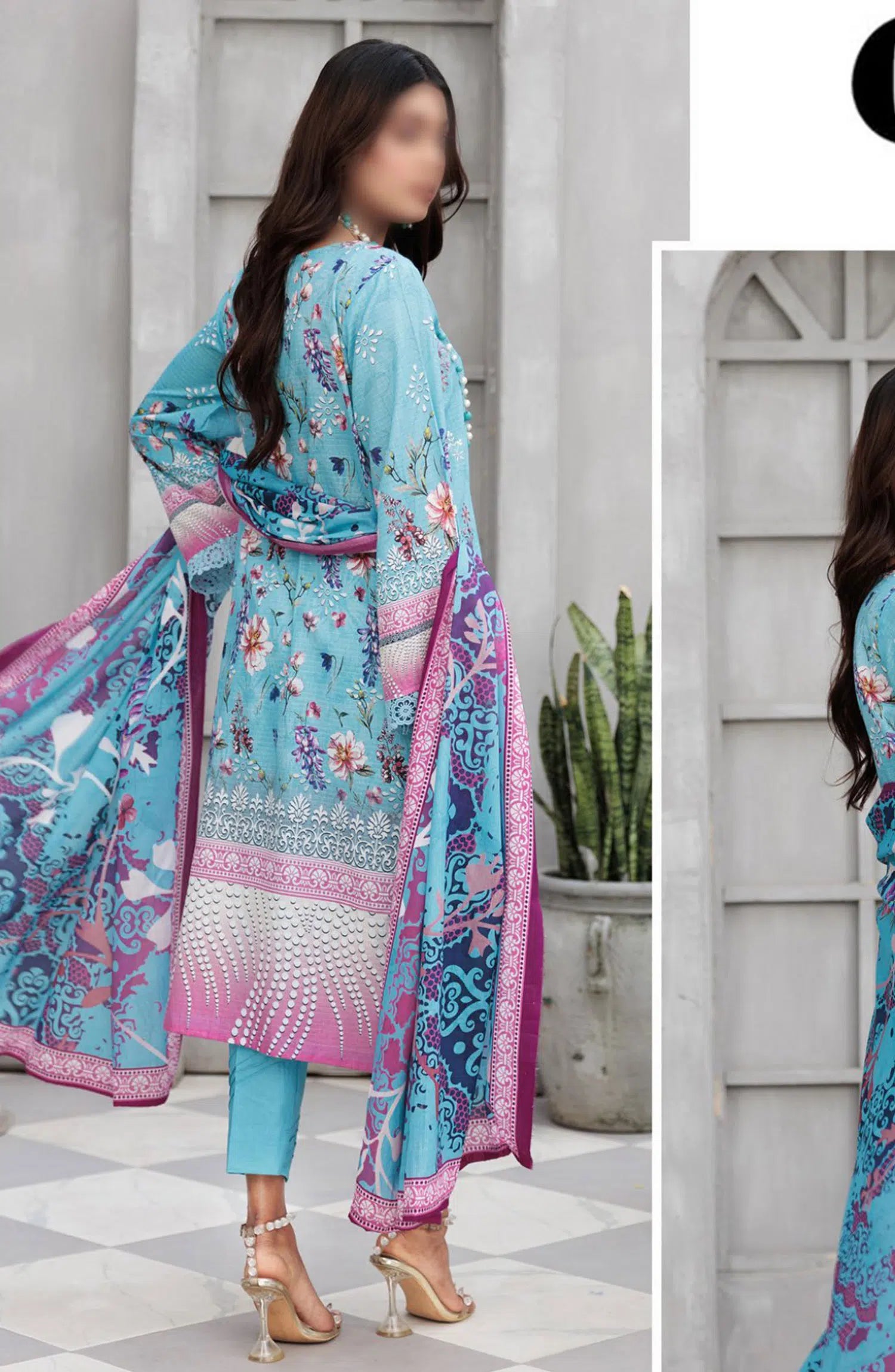 3 Piece Digital Printed and Embroidered Lawn Dora Suit with Digital Fancy Dupatta.