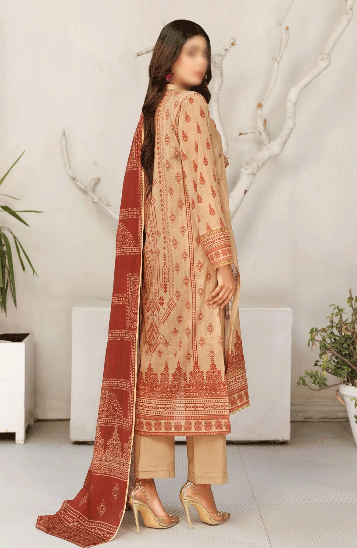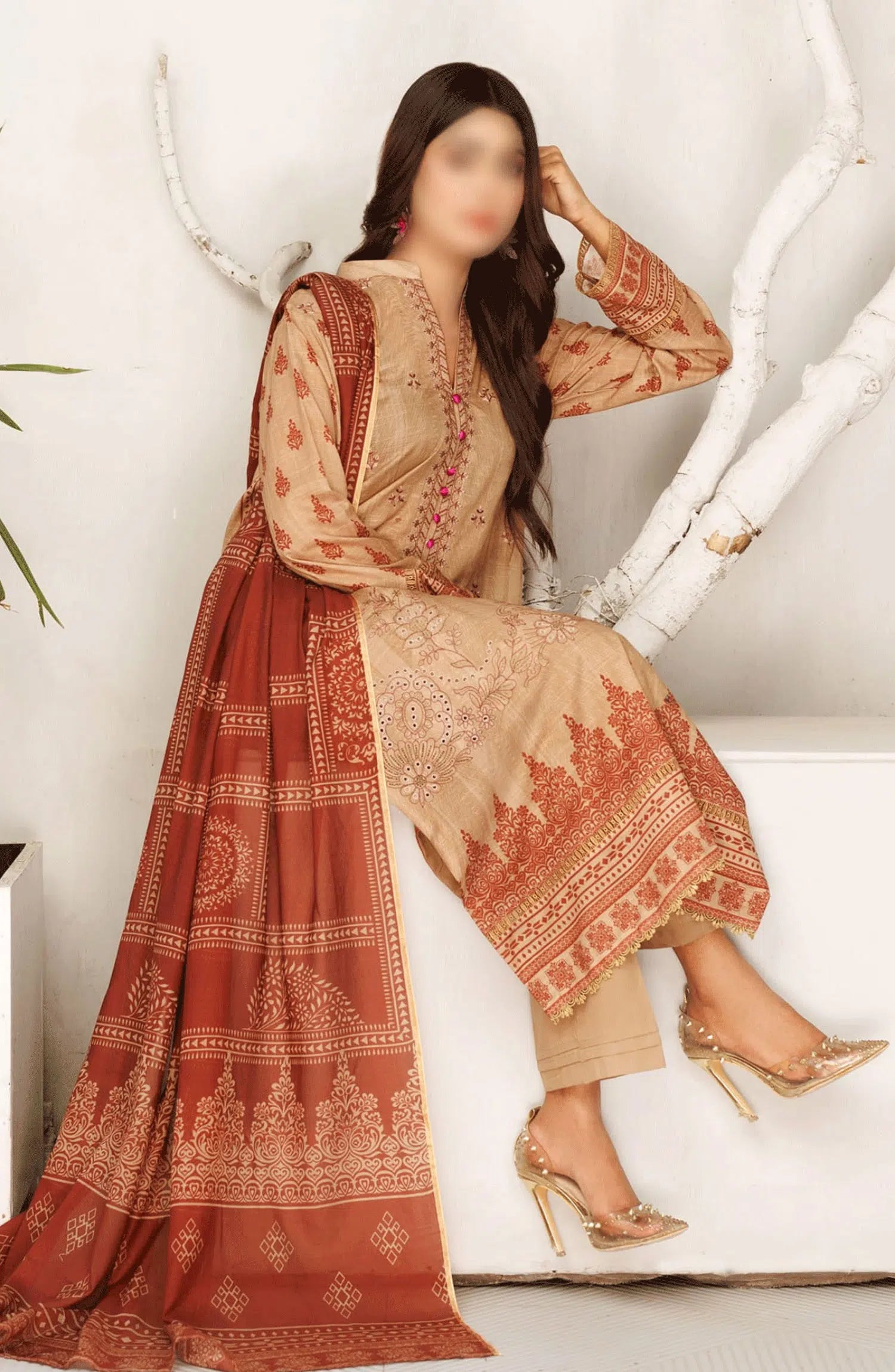 Jasmine Lawn Slub Digital Print and Embroidered Collection Vol 17 has been styled in the image for photography and illustrative purposes.