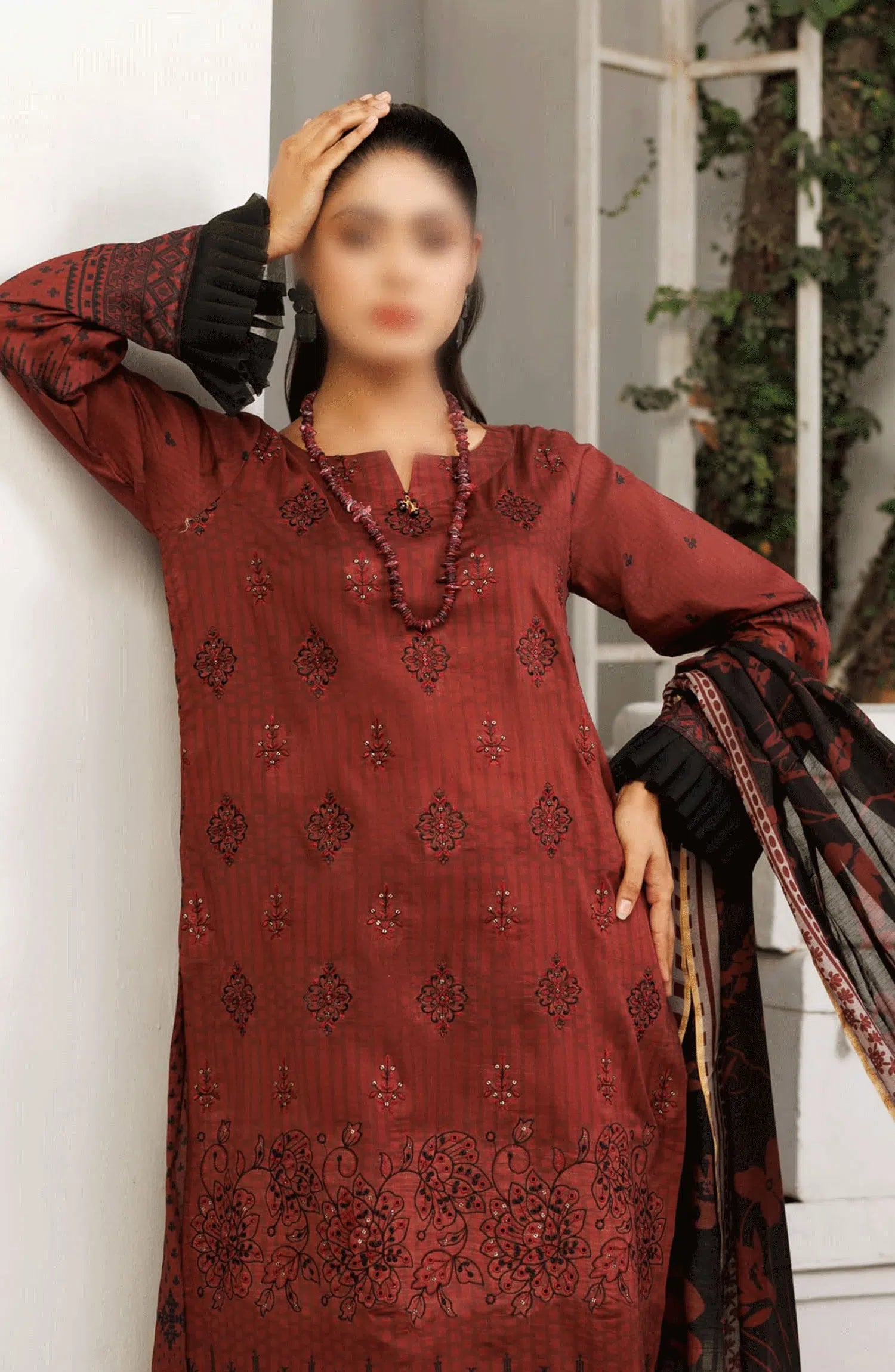 Rua by Casual Lite Embroidered Premium Linen Stitched 3 Piece Suit - D-02 Crimson Folklore - CL25RU - Red - Winter Collection