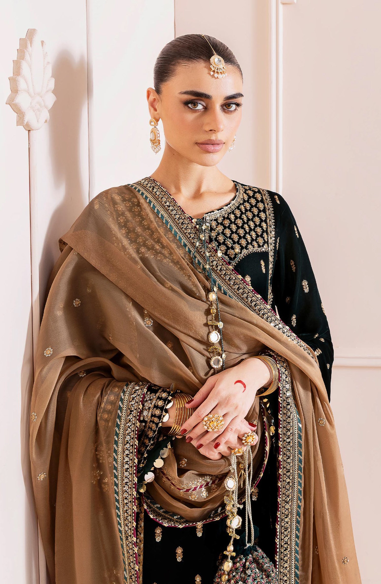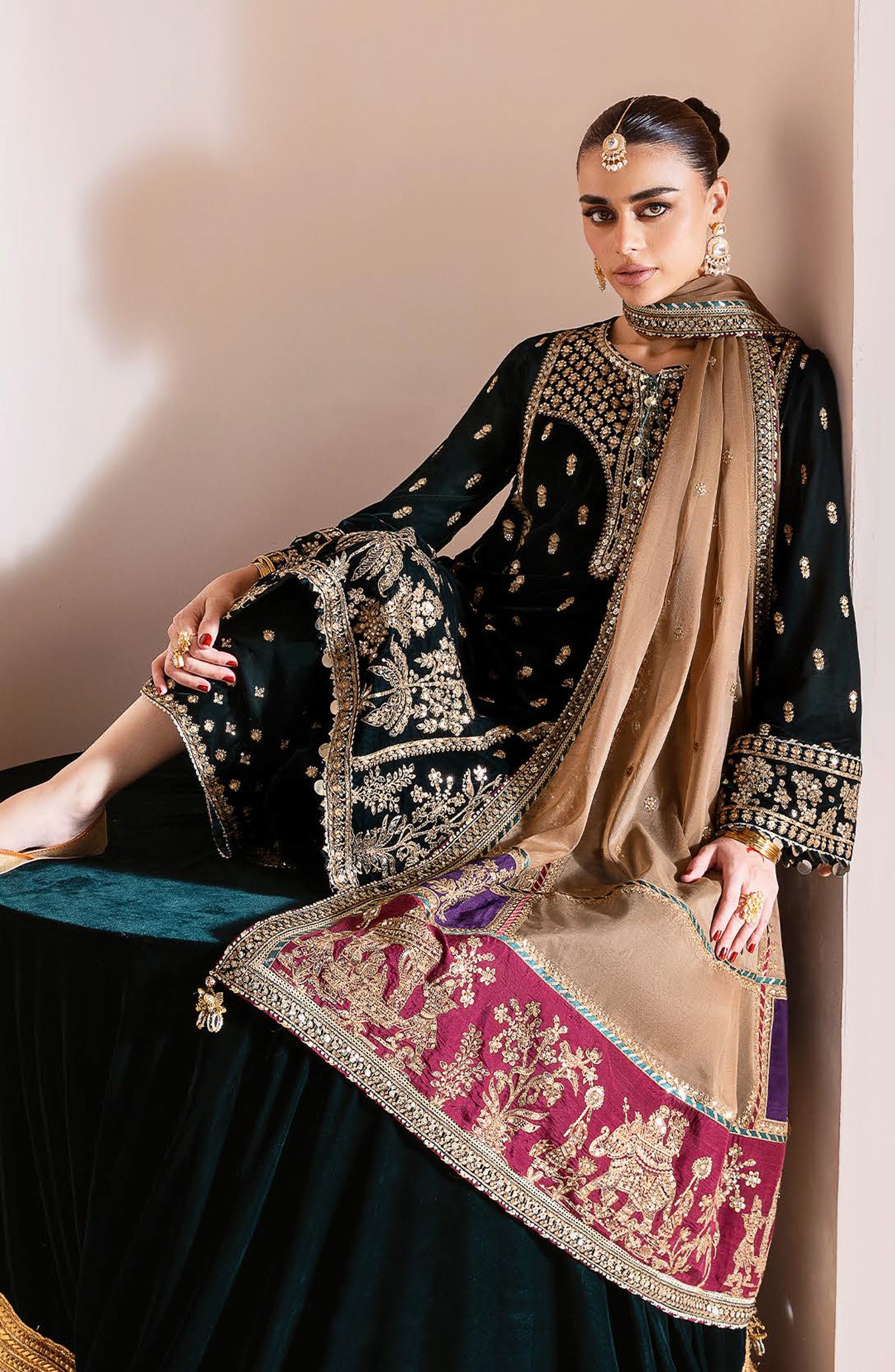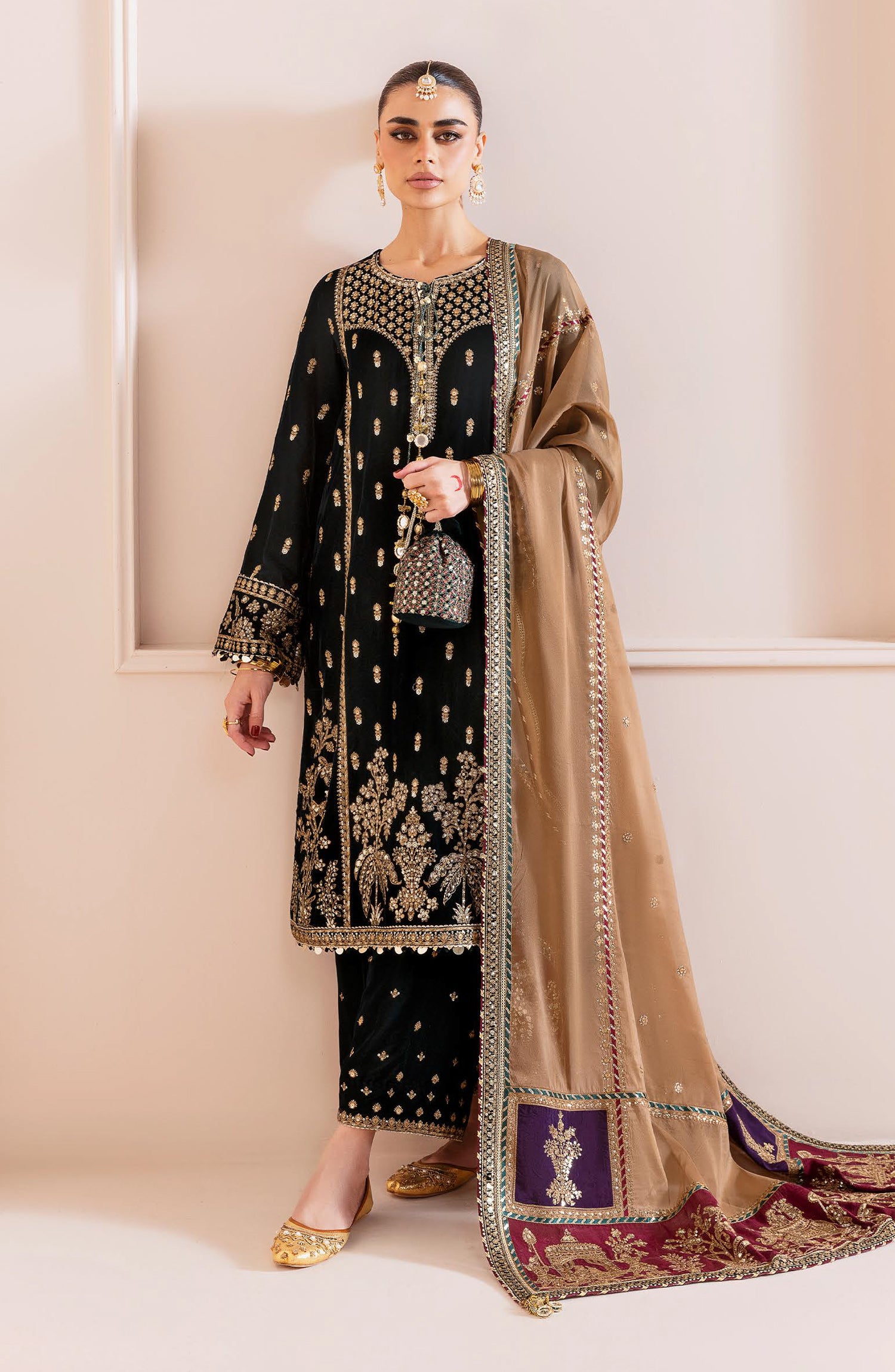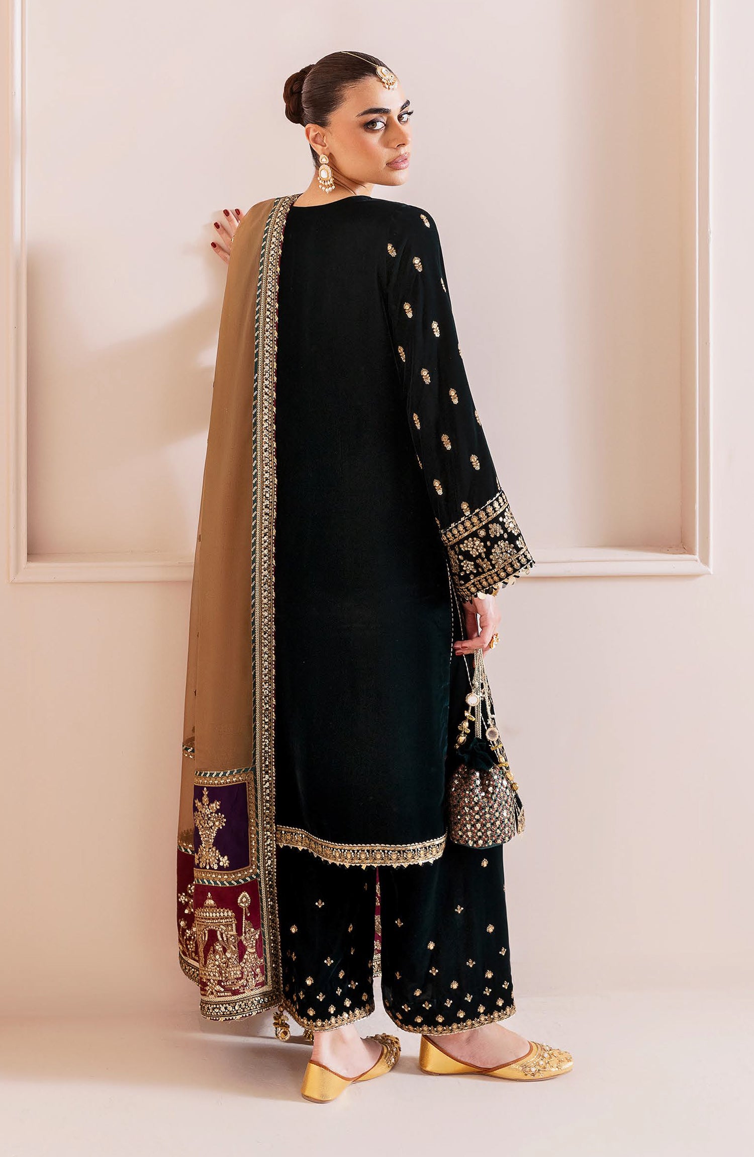 Embroidered Pure Velvet Front, Back & Sleeves Borders