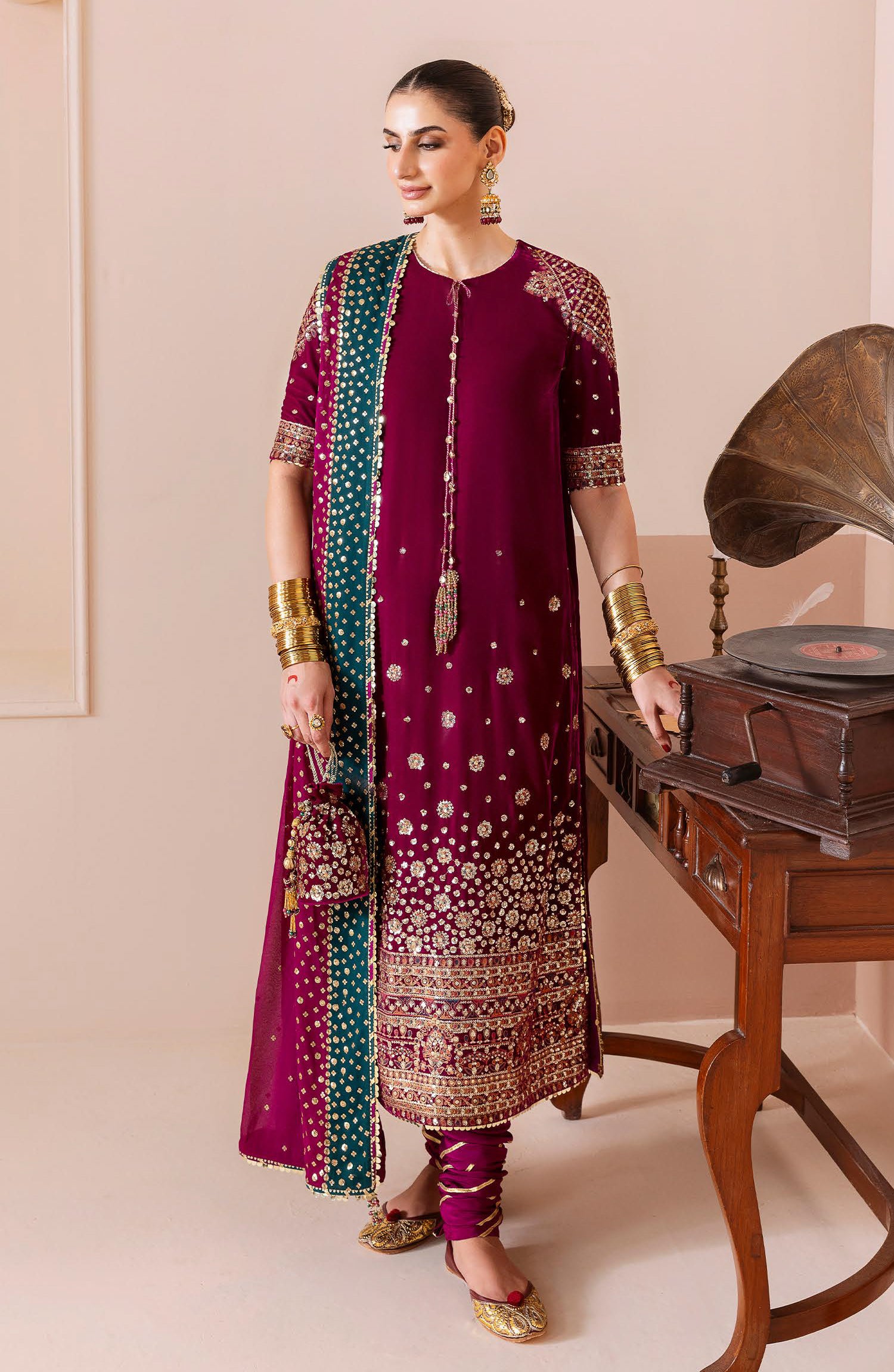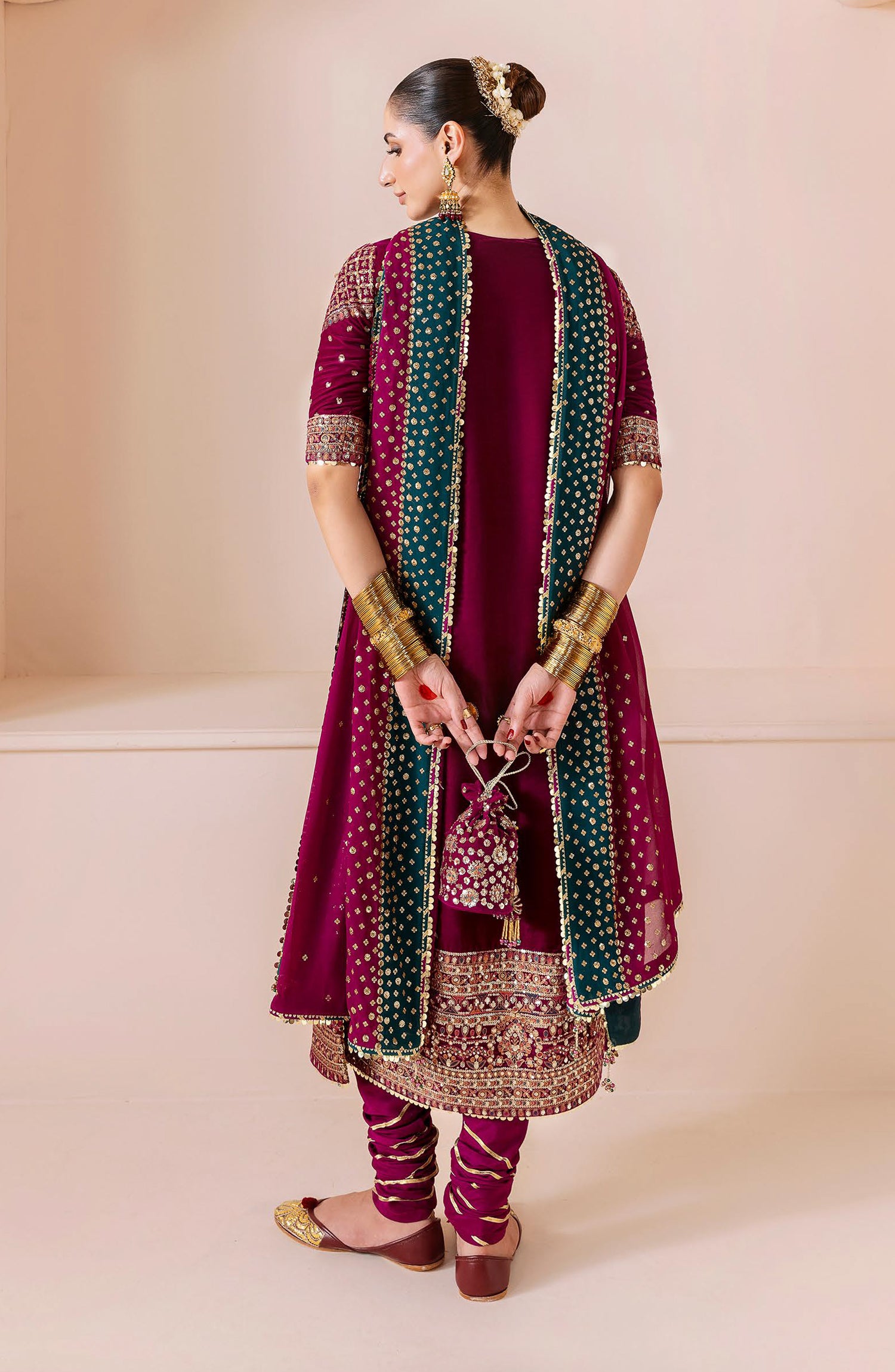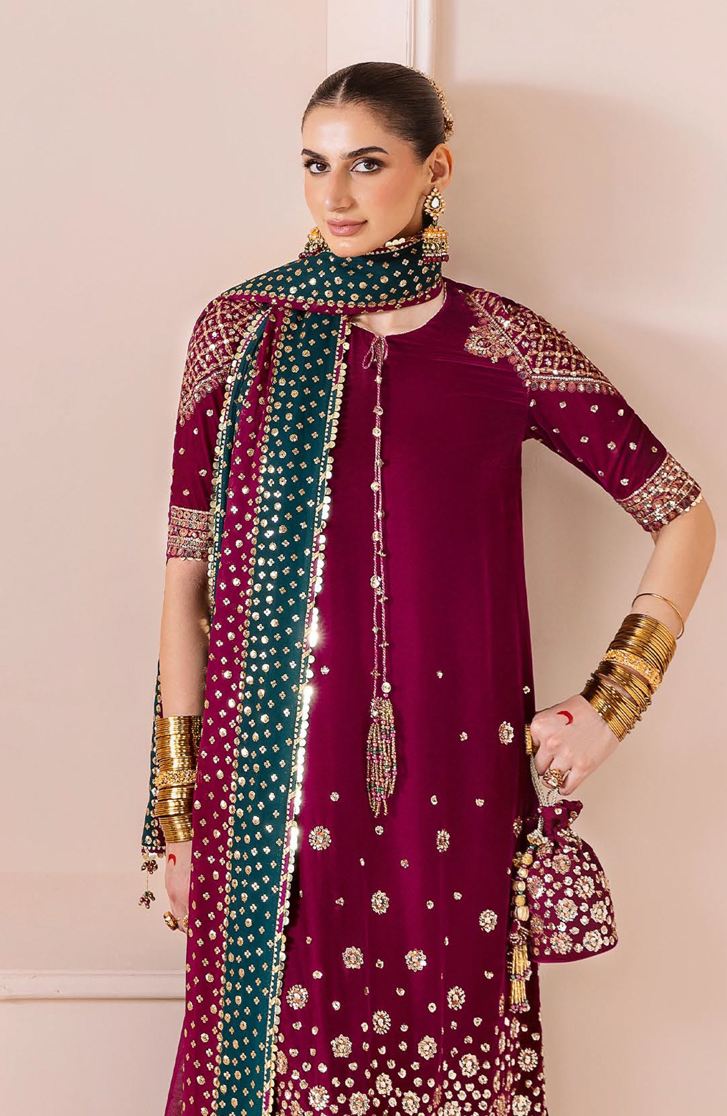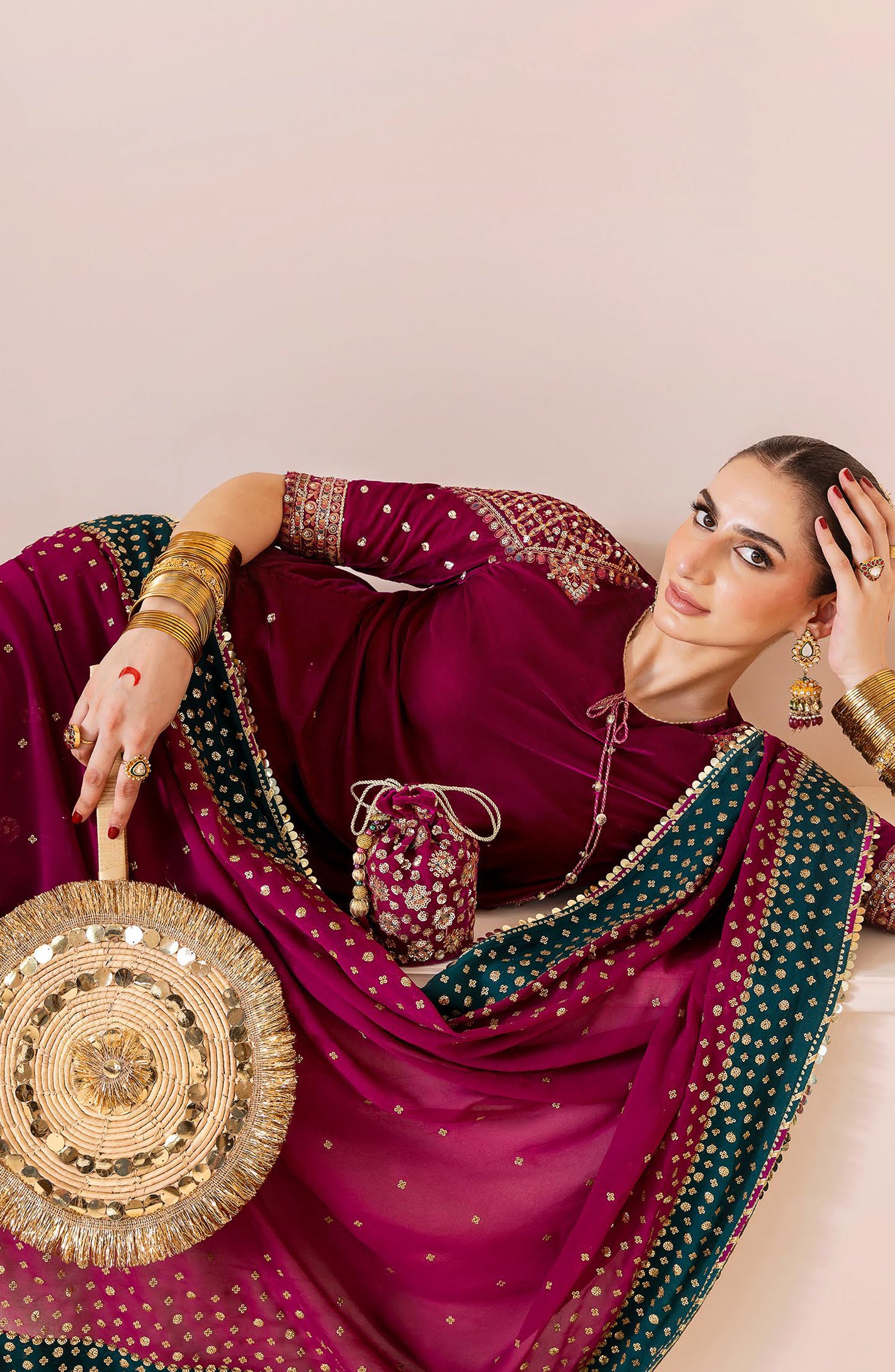 Embroidered Pure Velvet Front, Back & Sleeves Borders