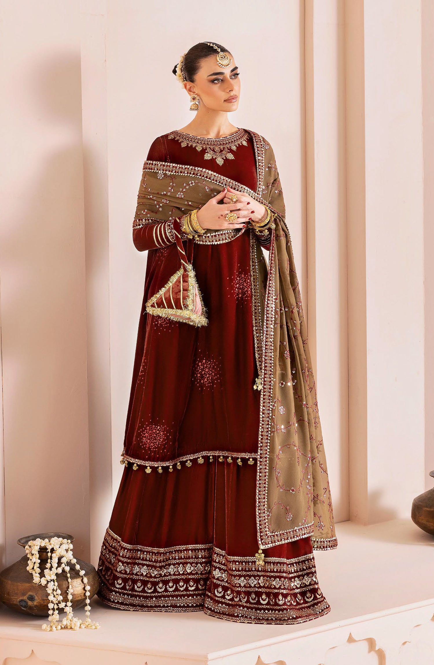 Embroidered Pure Velvet Bottom Border or Front & Back Border