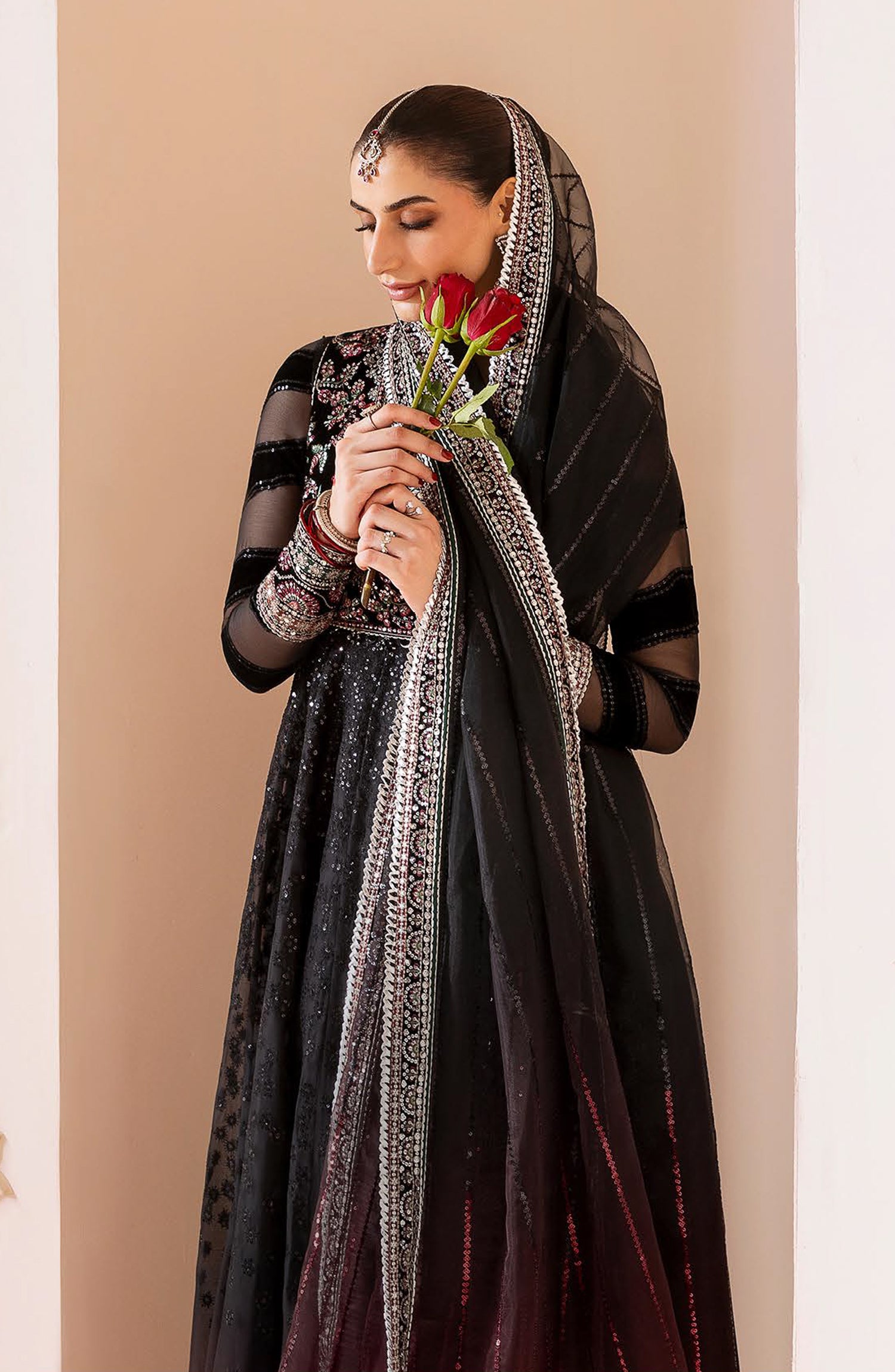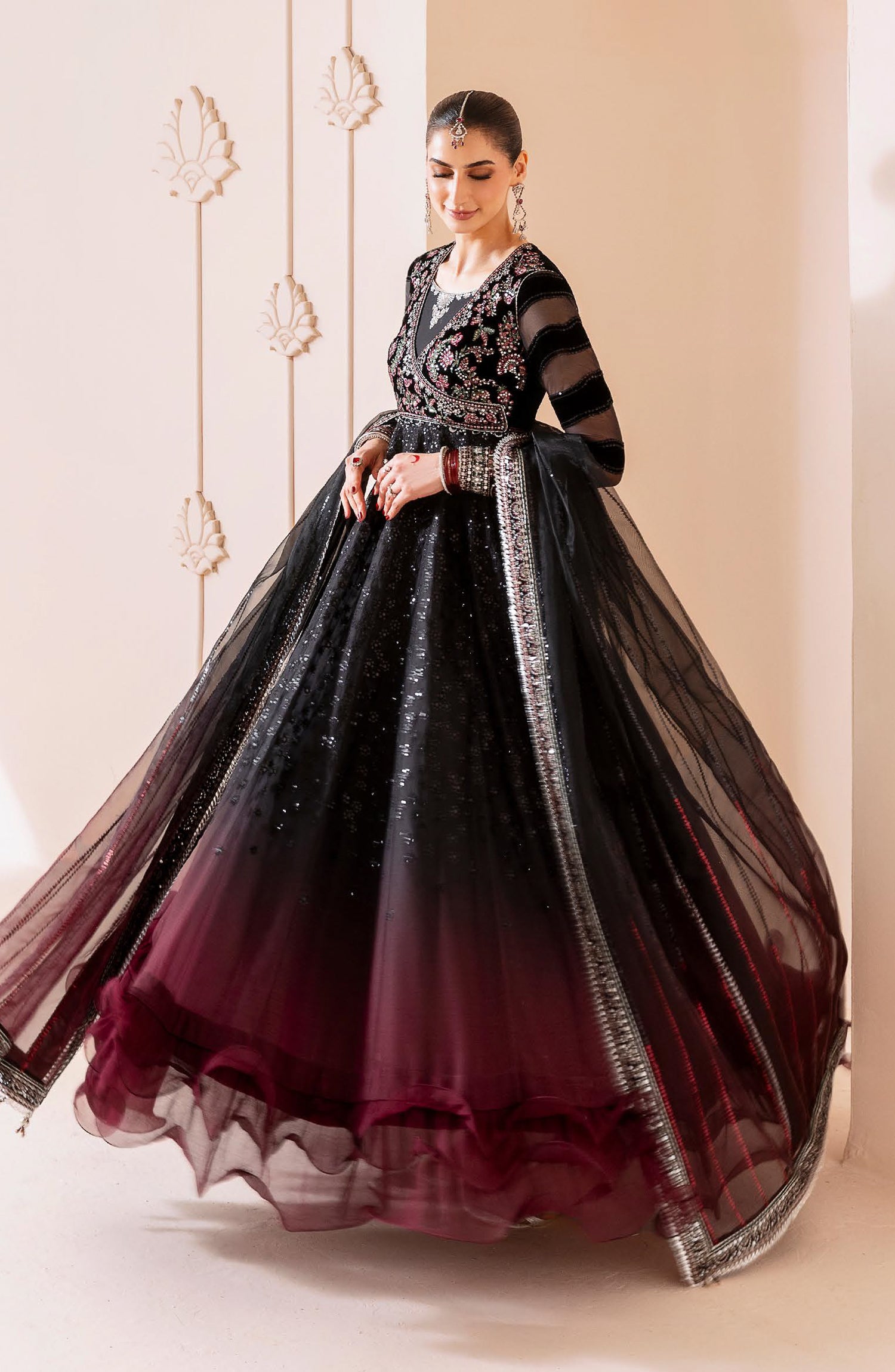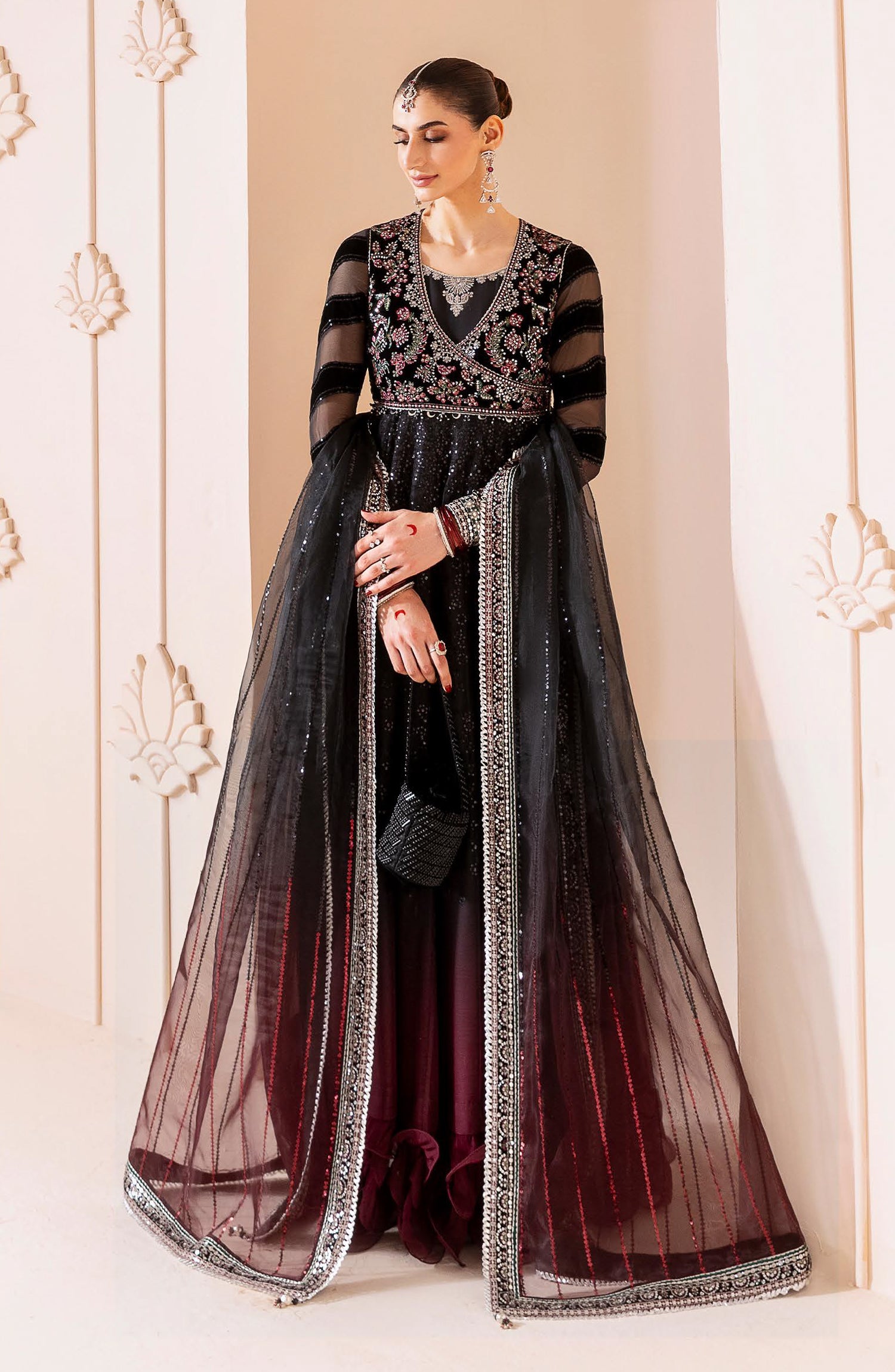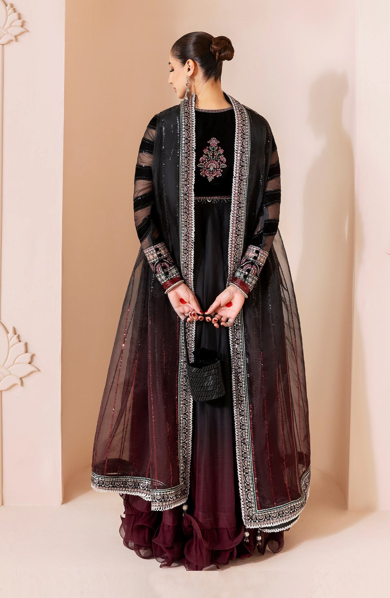 Embroidered Pure Velvet & Chiffon Laser Technique Sleeves