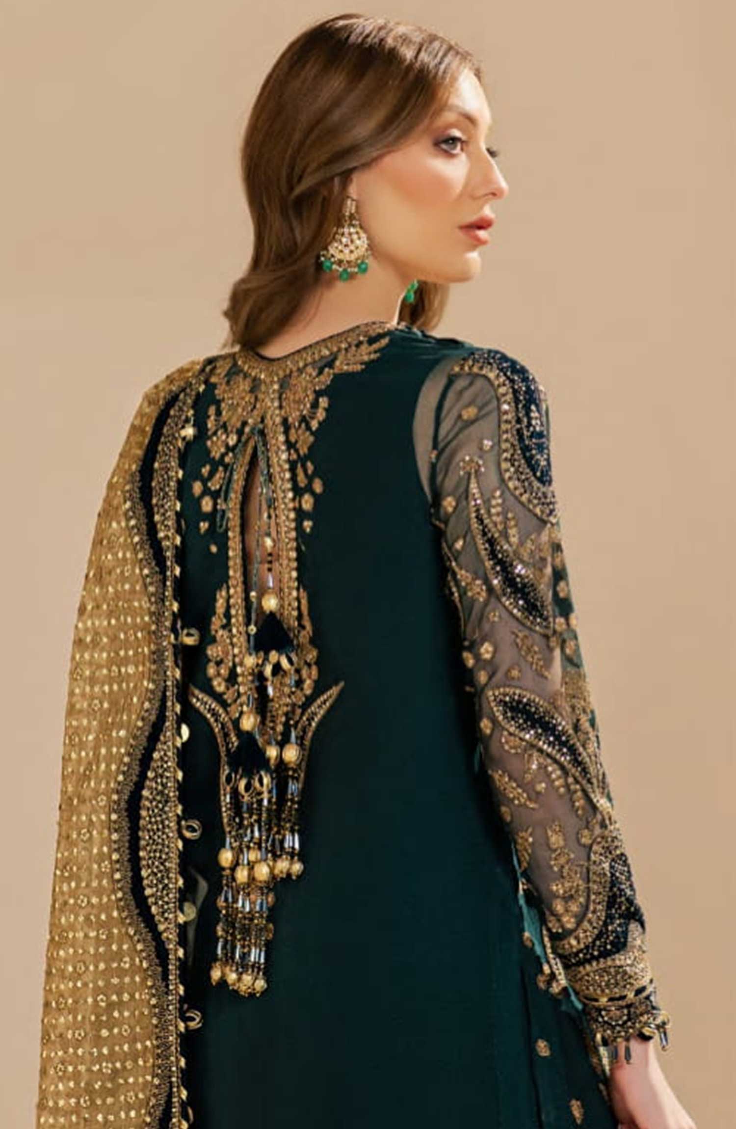 • Embroidered Chiffon with Velvet Appliqued Sleeves