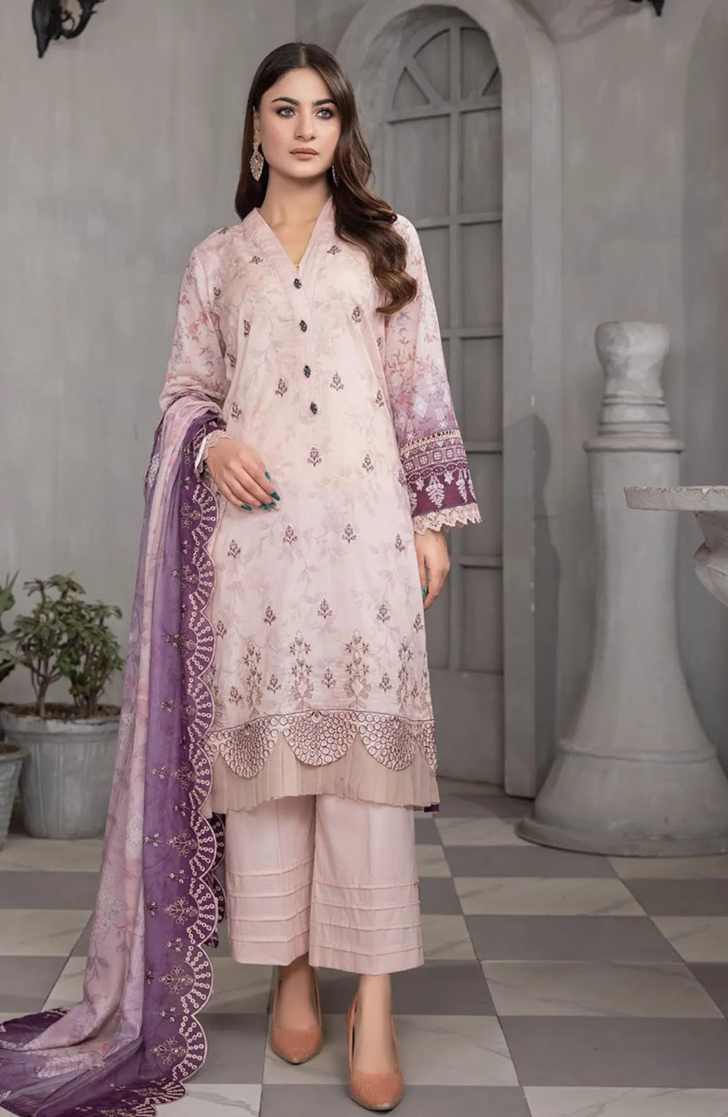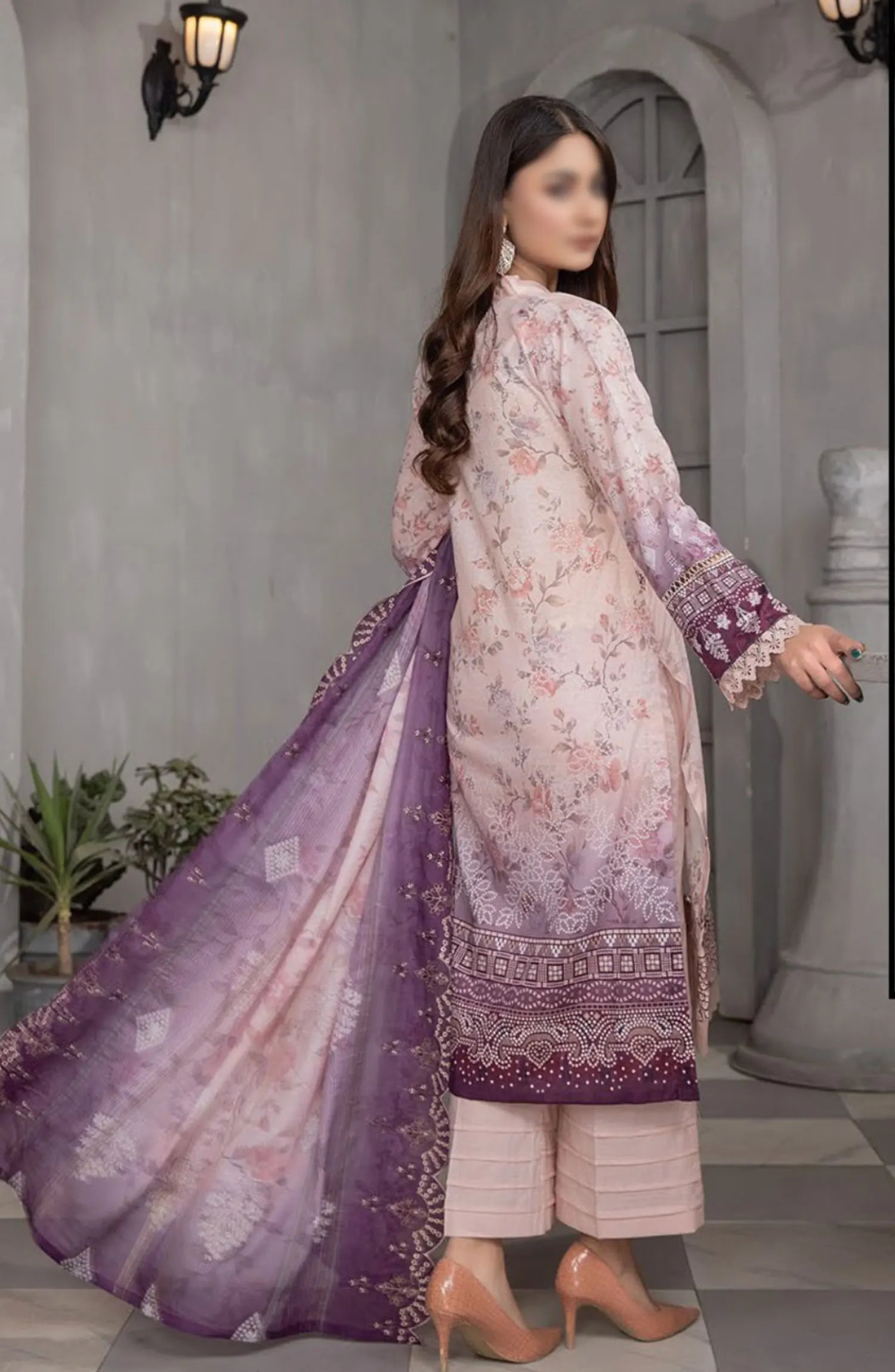 HZ Textile Digital Printed Linen Slub Unstitched 3 Piece Suit - LSD-303 - HZ25LNSL - Pink - Winter Collection