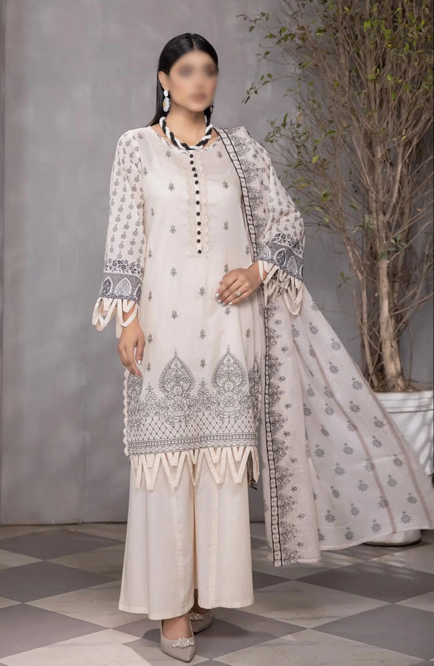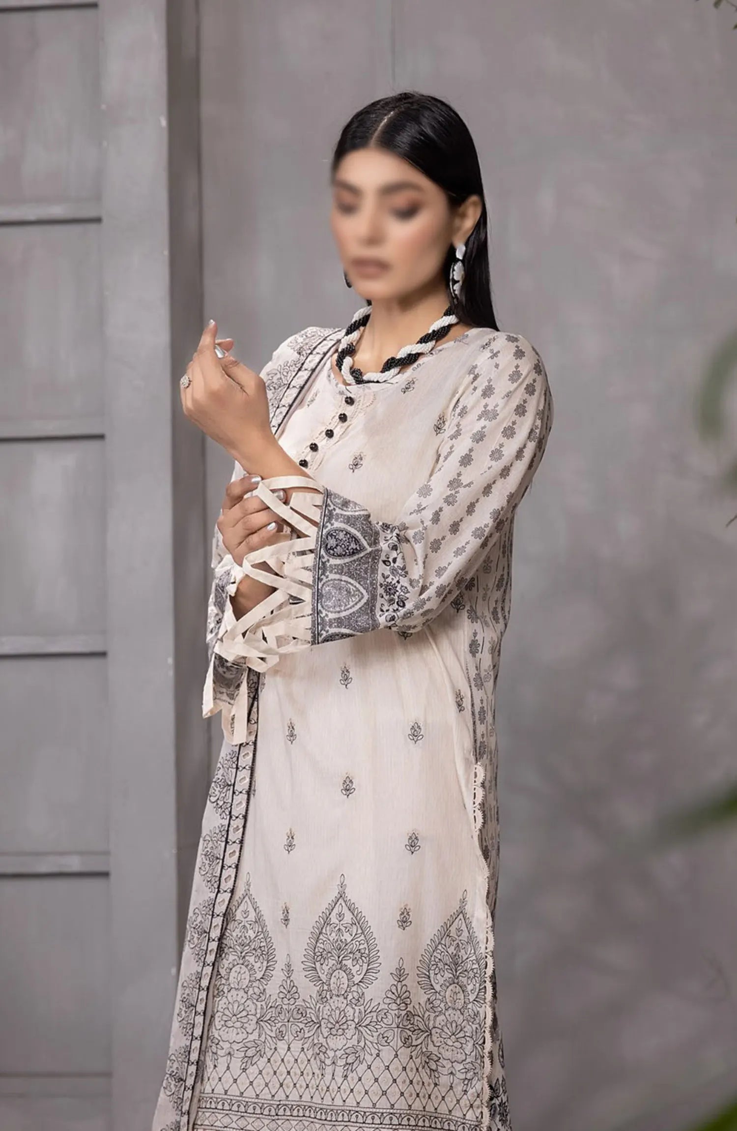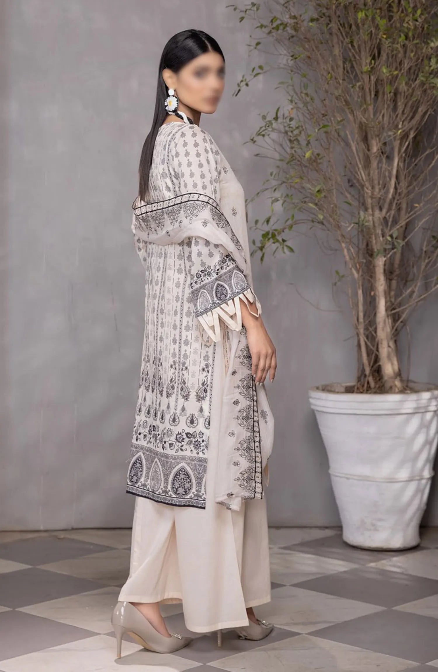 HZ Textile Digital Printed Linen Slub Unstitched 3 Piece Suit - LSD-304 - HZ25LNSL - White - Winter Collection
