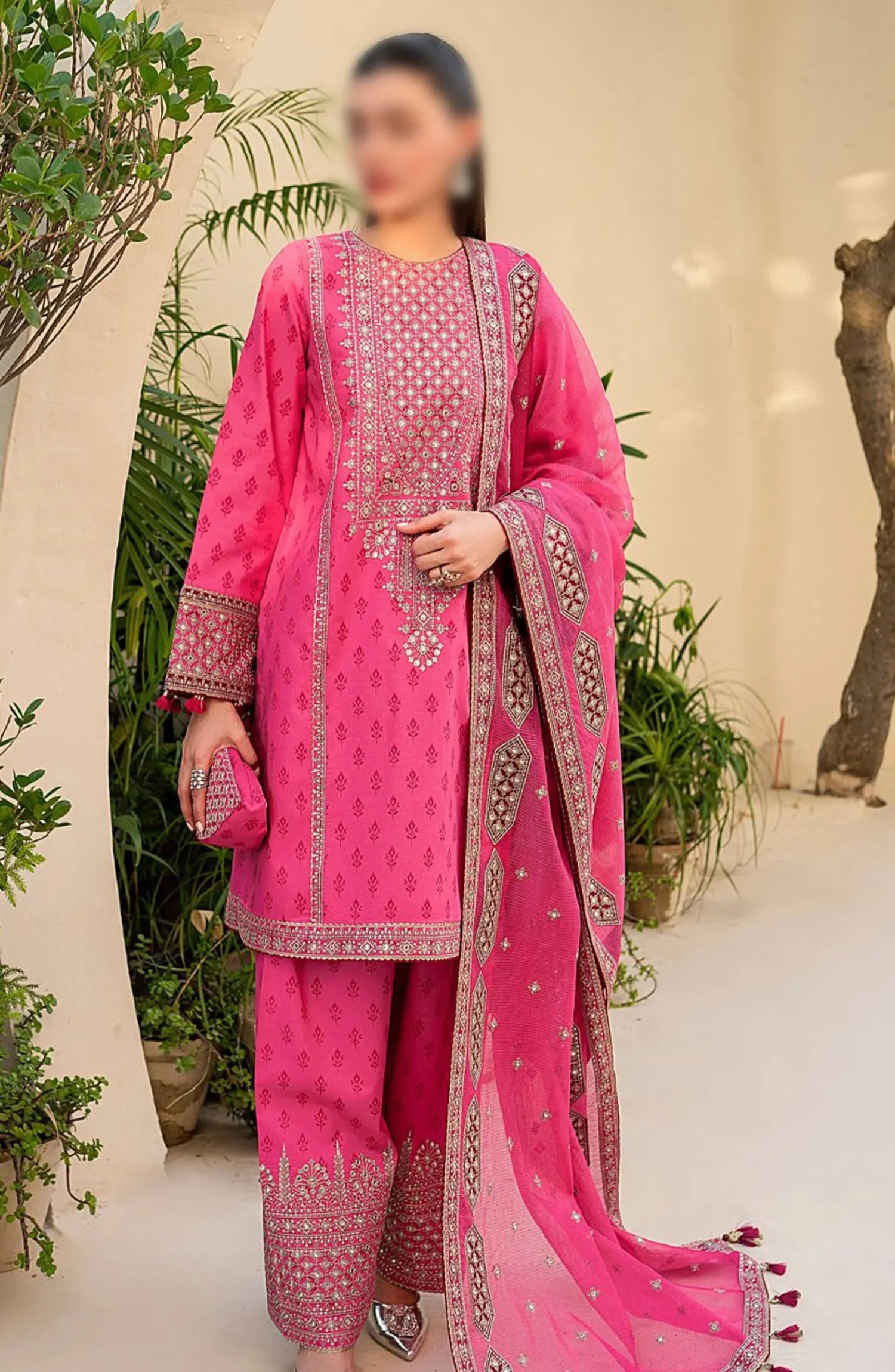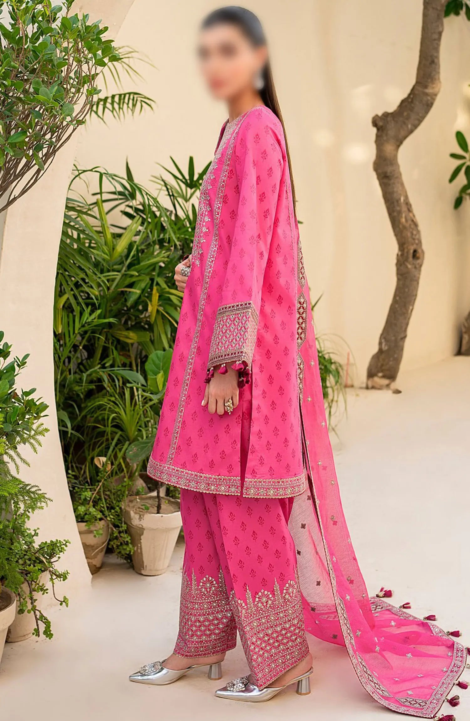 Jazmin Iris Eid Lawn SS Collection 2024 has been styled in the image for photography and illustrative purposes.