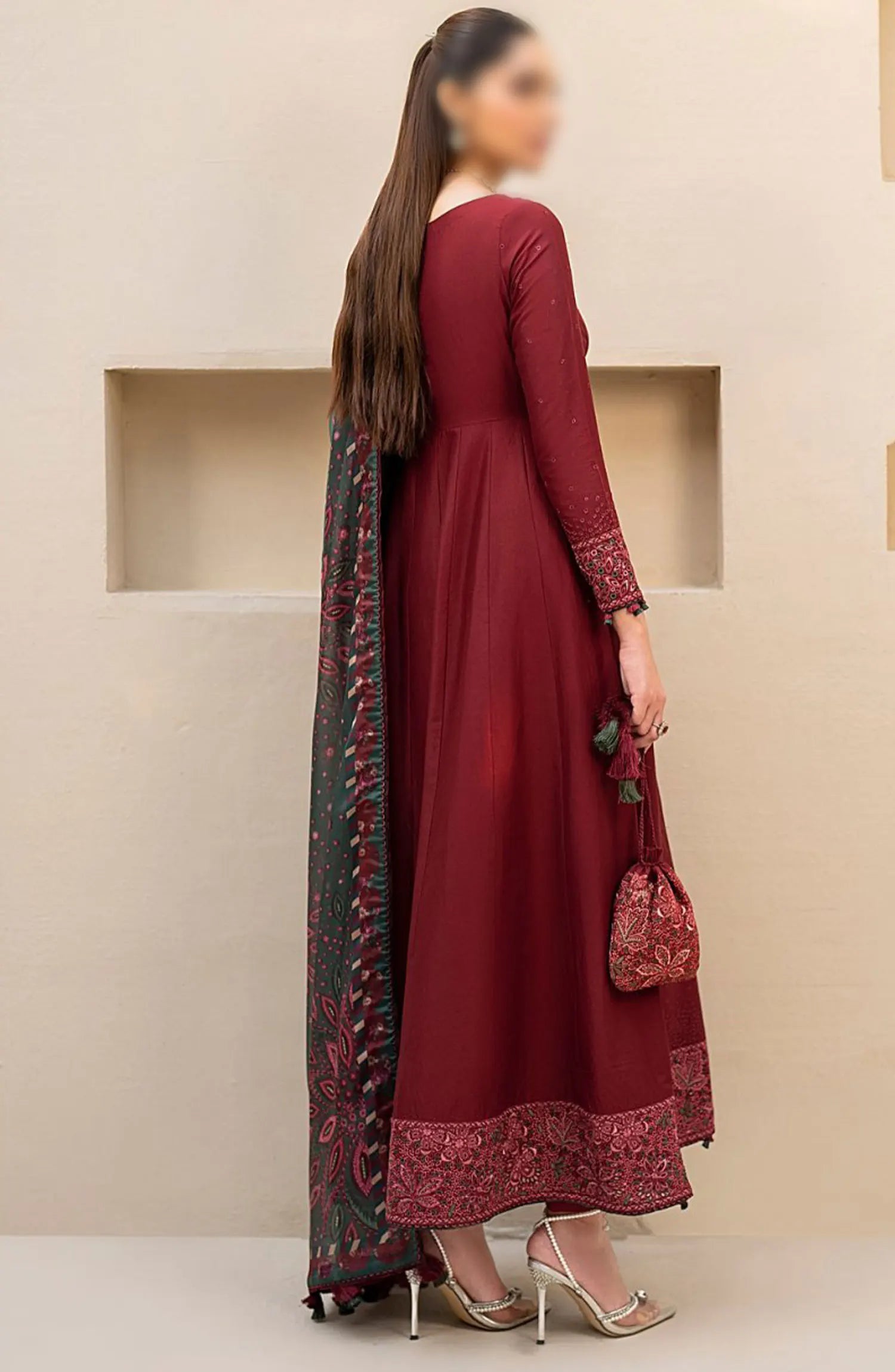The standard style comes as a long-sleeved kameez with dupatta and trouser/shawlar.