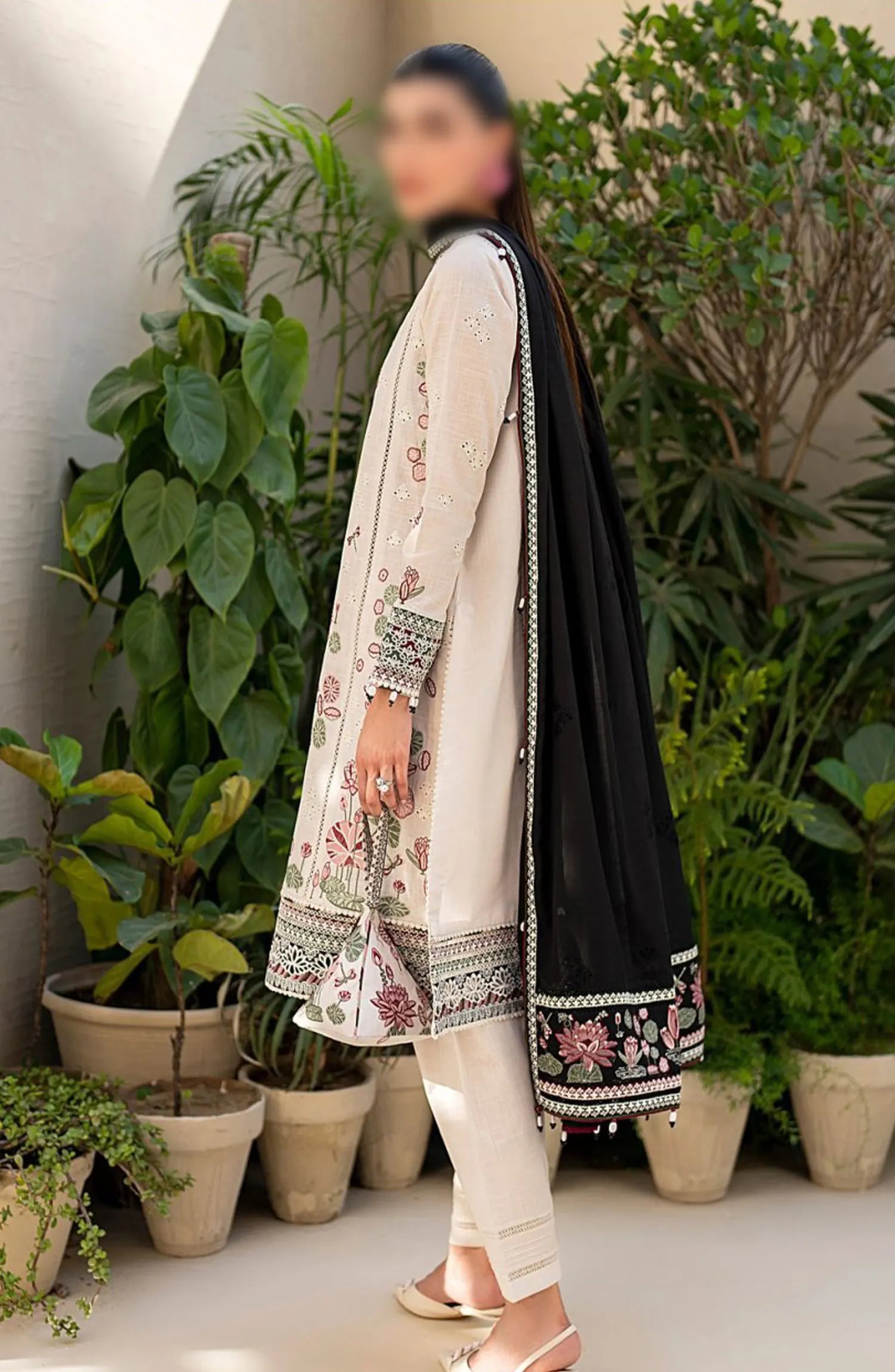Jazmin Iris Eid Lawn SS Collection 2024 has been styled in the image for photography and illustrative purposes.