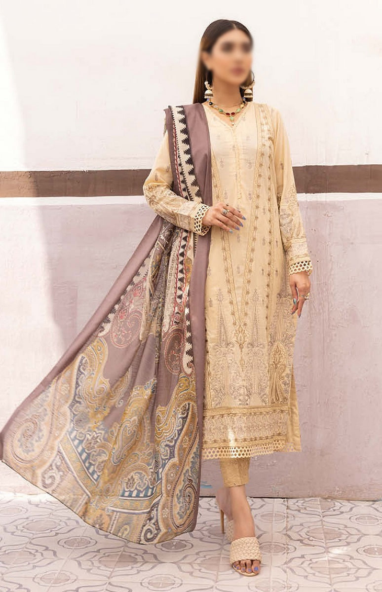 The standard style comes as a long-sleeved kameez with dupatta and trouser/shawlar.