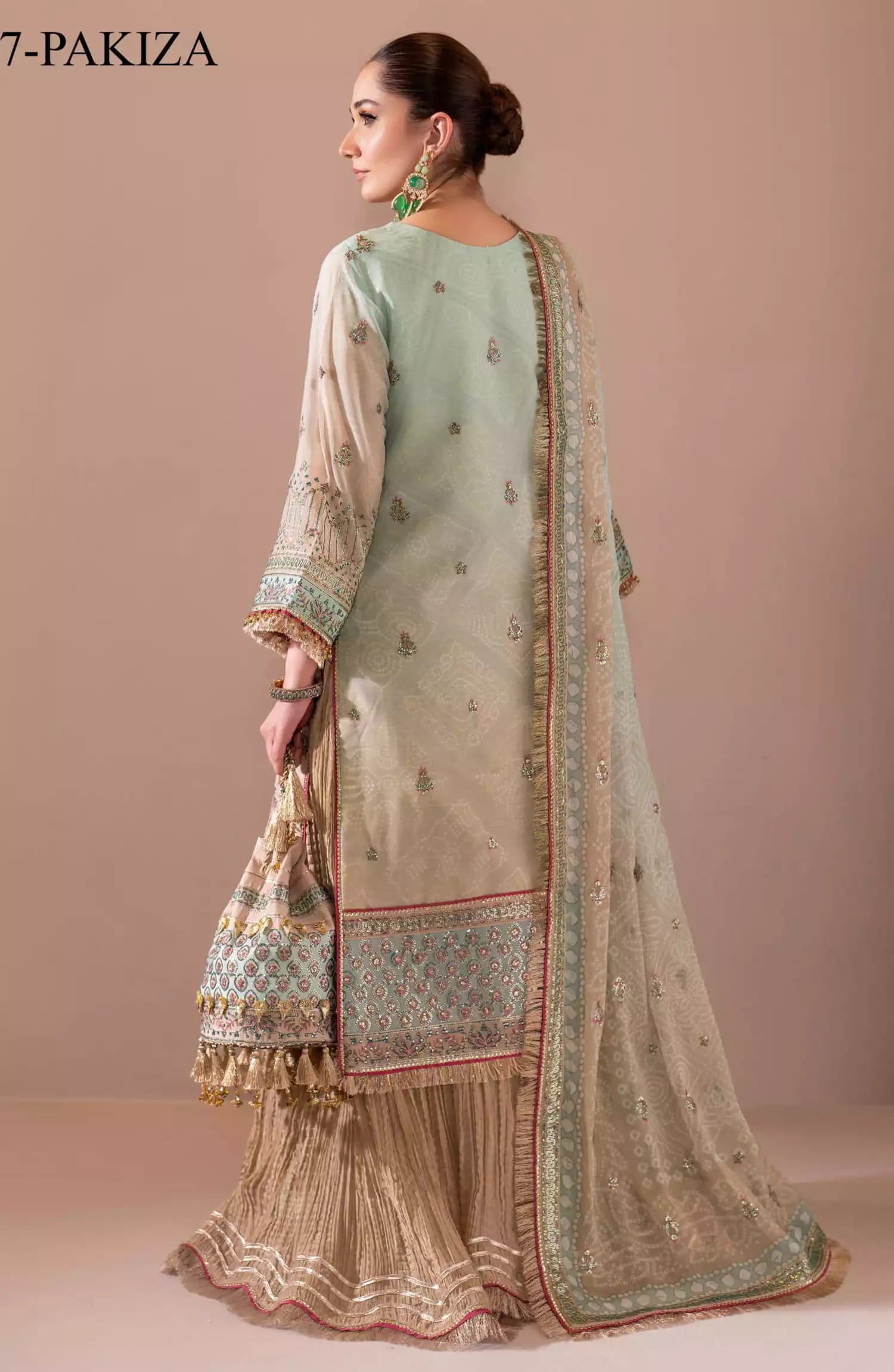 Embroidered Shaded Chiffon Front Kali