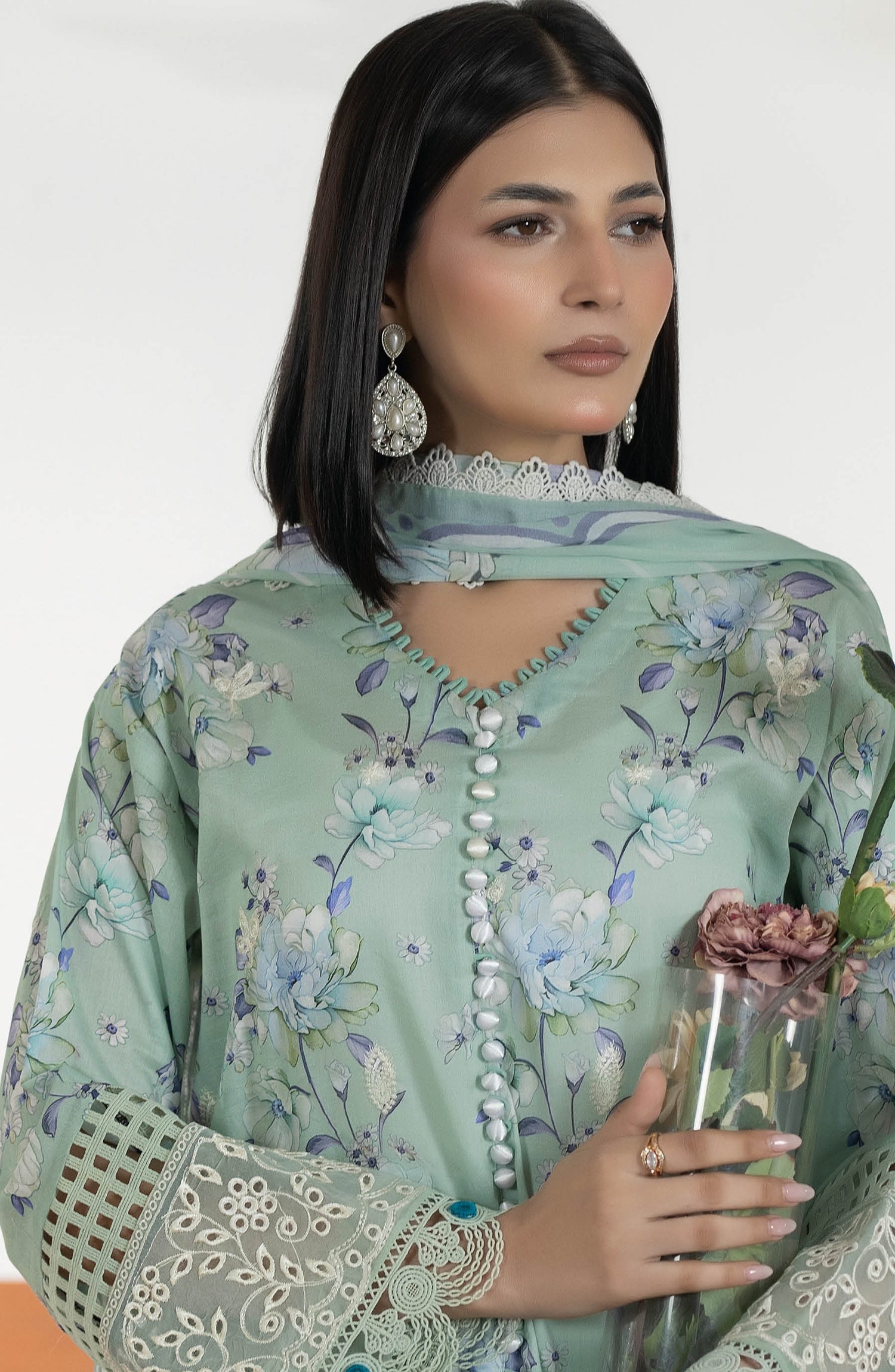 Printed & Embroidered Lawn Unstitched 3 Piece Suit with Printed Lawn Dupatta