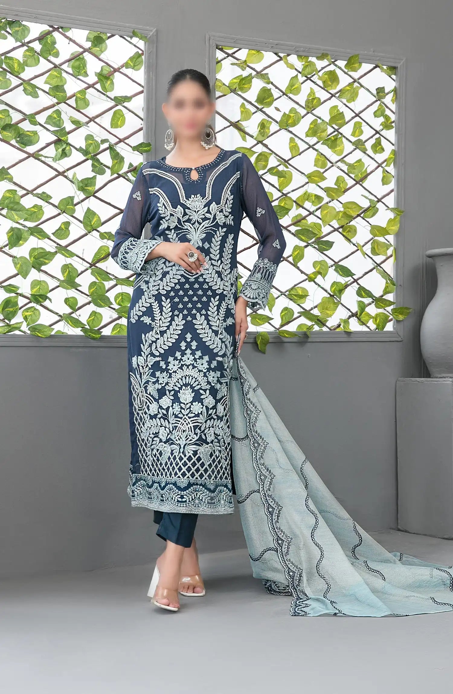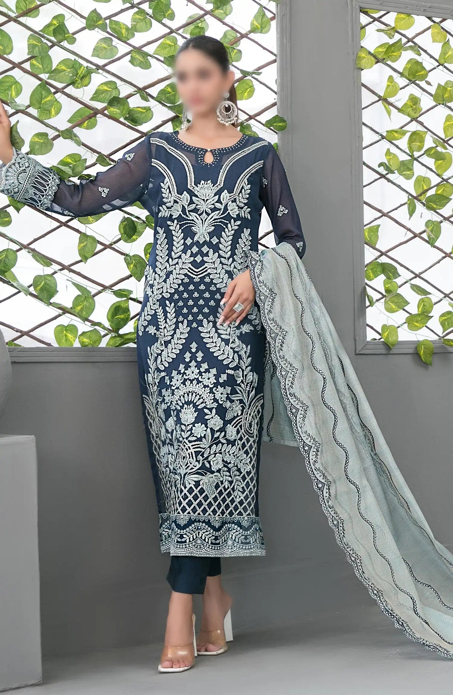 JIAH - Fancy Exclusive Embroidered Chiffon Collection 2024 has been styled in the image for photography and illustrative purposes.
