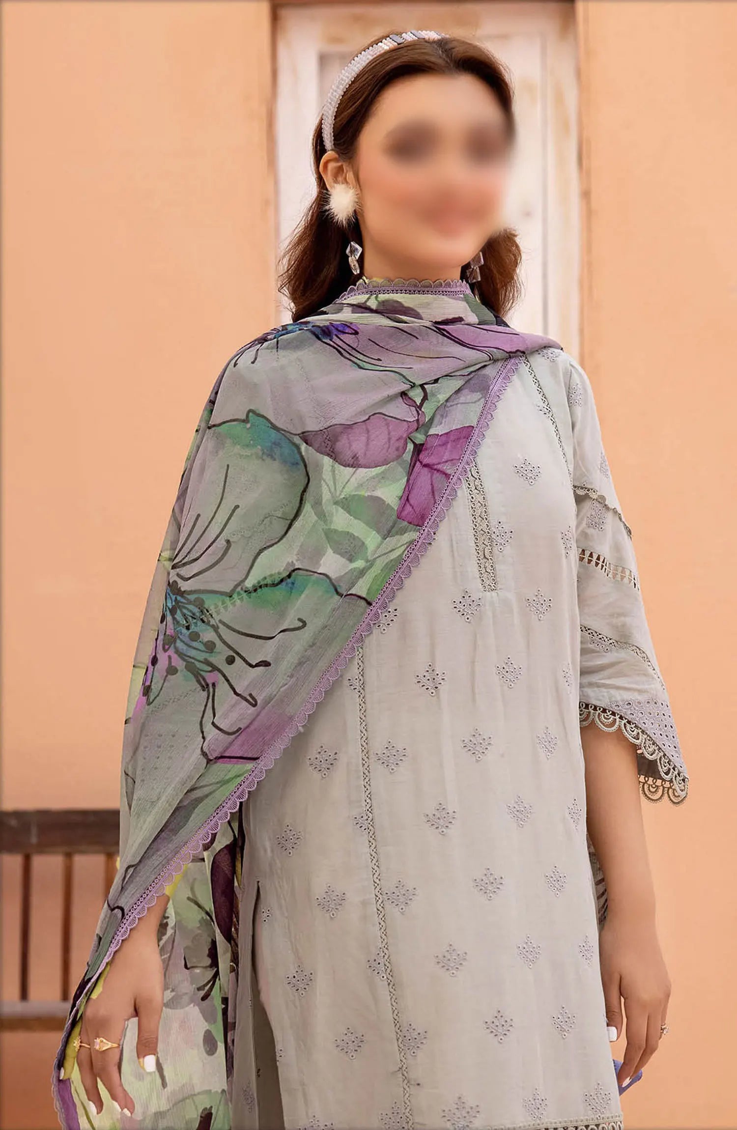 Johra Aaghaaz Chikankari Lawn Collection 2024 has been styled in the image for photography and illustrative purposes.