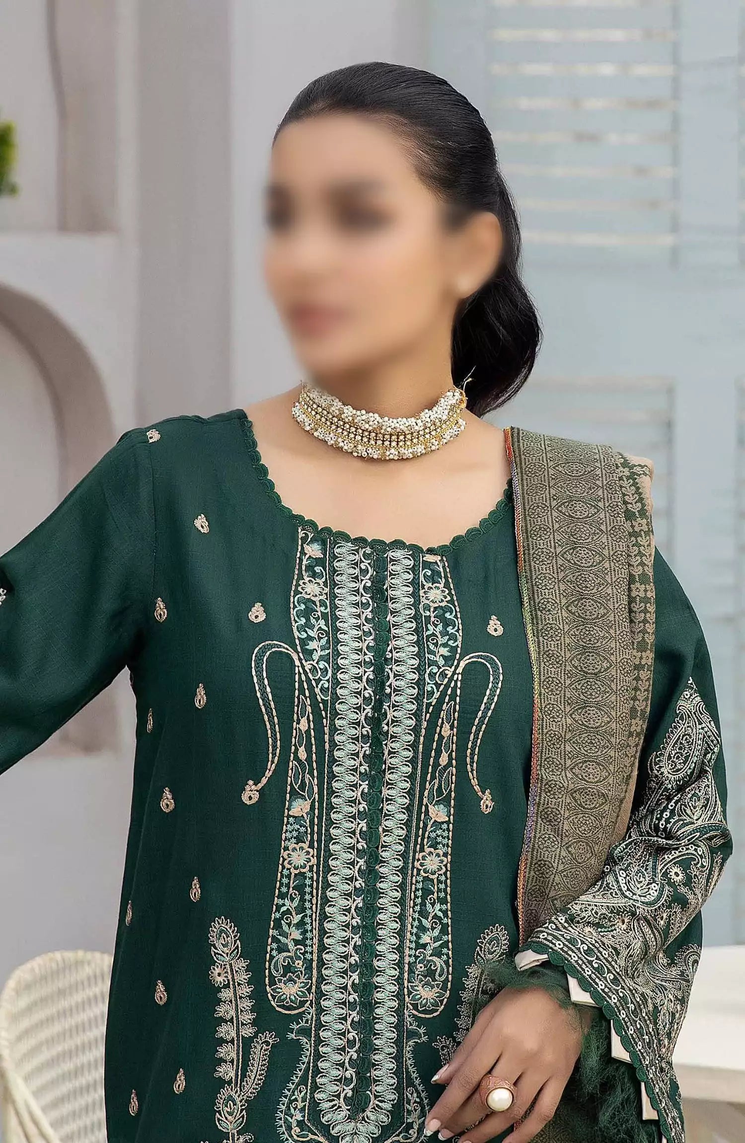 Johra Deewan Embroidered Winter Collection has been styled in the image for photography and illustrative purposes.