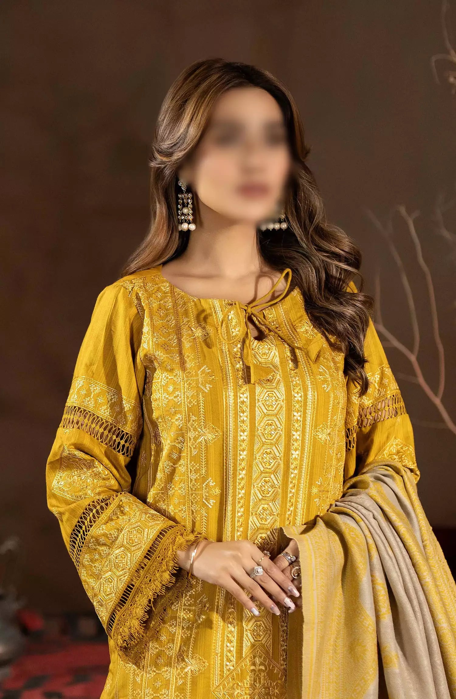 Johra Emerald Embroidered Winter Collection has been styled in the image for photography and illustrative purposes.