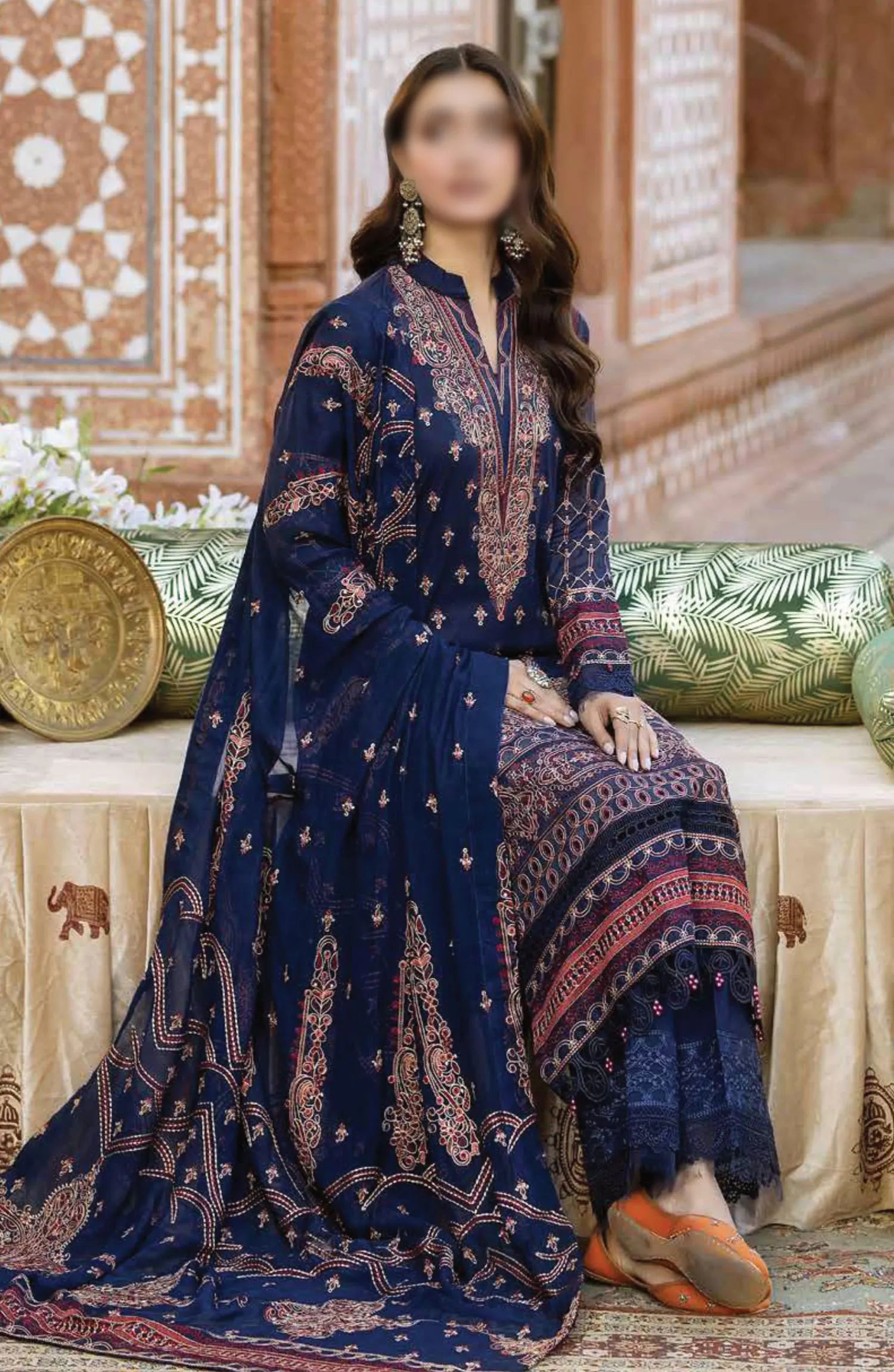 Johra Gold Embroidered Swiss Voile Collection 2024 has been styled in the image for photography and illustrative purposes.