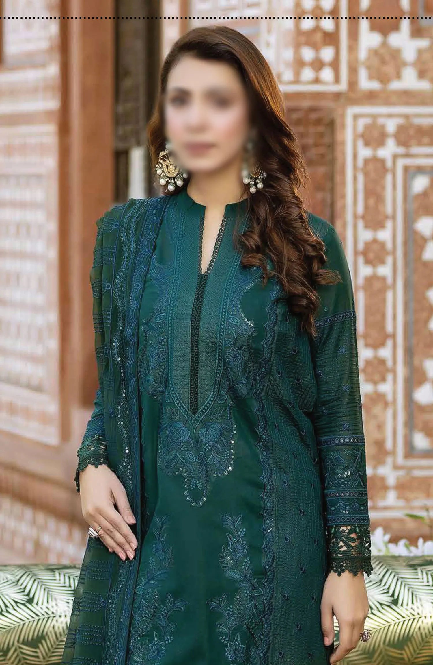 Johra Gold Embroidered Swiss Voile Collection 2024 has been styled in the image for photography and illustrative purposes.